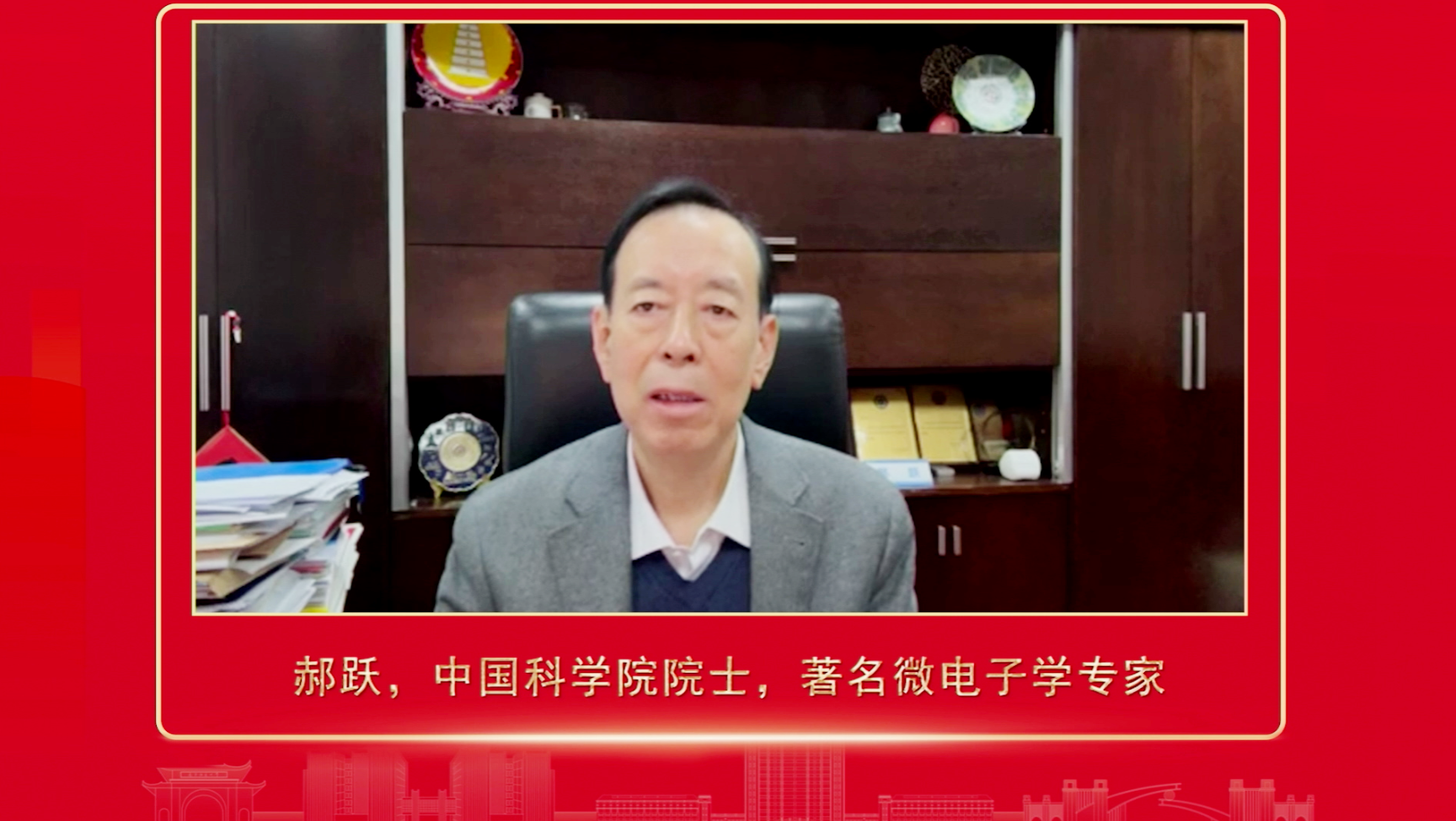 ▲中国科学院院士、著名微电子学专家郝跃祝福视频