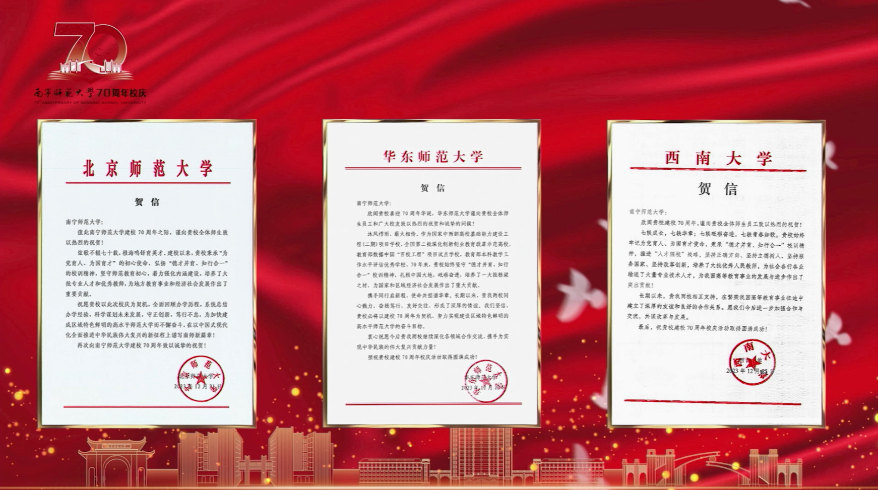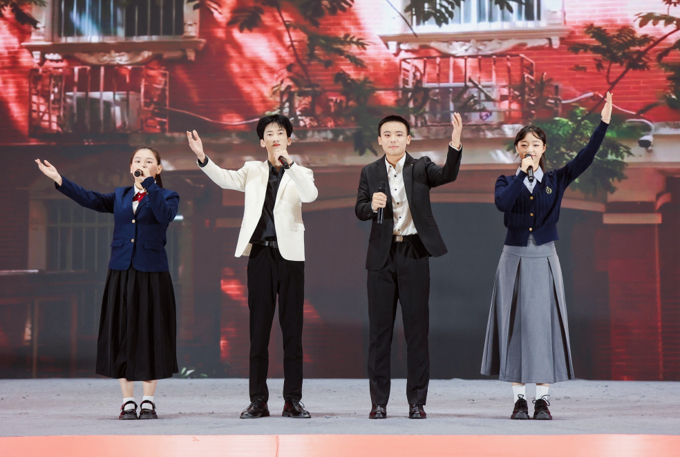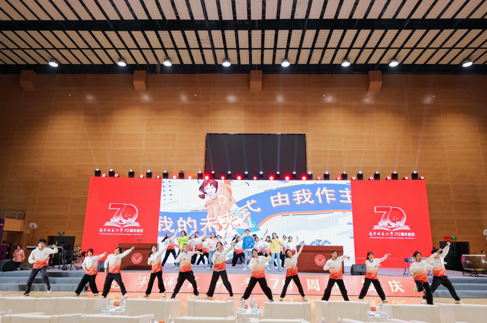 百余名师生献词,祝福学校七十华诞。“奋进新时代,做有为青年”,师生们情感饱满,声音激荡。“胸前戴着南师的校徽”“身上刻着南师的印记”“爱南师”“强学校”一平一仄讲述着对学校的感恩与祝福;“看见光,成为光,追随光”“让我们牢记习近平总书记的谆谆教导,做有理想、敢担当、能吃苦、肯奋斗的新时代有为青年!”每字每句,传递出青年的时代担当。