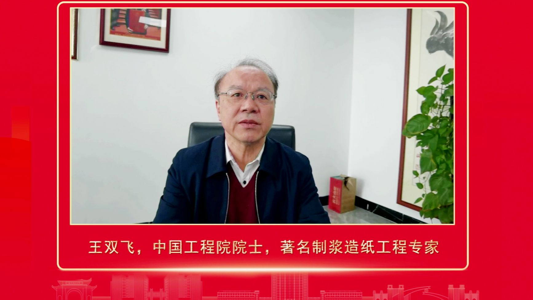 ▲中国工程院院士、著名制浆造纸工程专家王双飞祝福视频