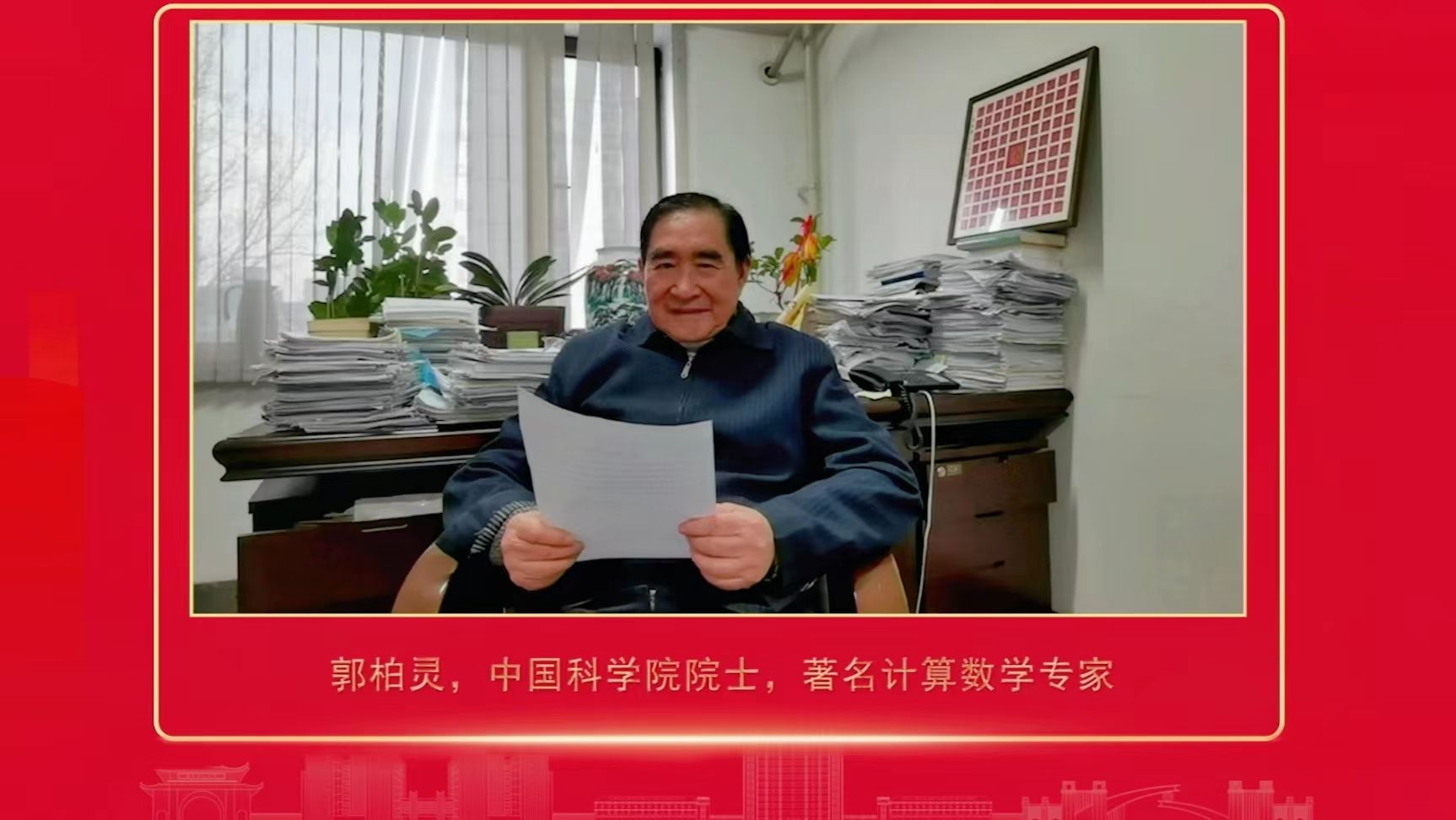▲中国科学院院士、著名计算数学专家郭柏灵祝福视频