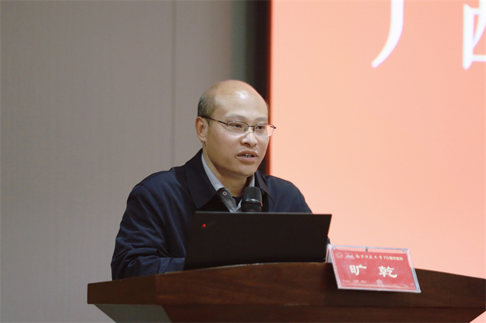 献礼七秩,共话未来,12月30日,best365足球官网70周年校庆系列学术活动“八桂中小学校长论坛”在武鸣校区行政楼一楼会议室成功举办。学校党委副书记隆广庆、广西壮族自治区教育厅基础教育处处长旷乾、校友代表以及来自南宁市兴宁区的85位基础教育学校新任校长和后备干部、教师教育学院全体人员参加了线下论坛,南宁市师范大学各类校长培训班的660位学员同时在线上观看论坛。论坛由学校教师教育学院王文蓉副院长主持。