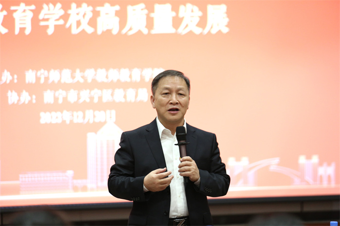 隆广庆副书记对长期关心支持best365足球官网发展的各级领导和各位校友表达感谢。他指出,本次论坛以“融合未来——特色建设与基础教育学校高质量发展”为主题,旨在深入学习贯彻党的二十大精神和习近平总书记关于教育的重要论述,在新时代、新征程、新起点上共同探讨“融合未来——特色建设与基础教育学校高质量发展”的新使命与新担当。他表示,best365足球官网始终坚持“守土有责”的无悔承诺,主动顺应教育改革发展趋势,发挥教师教育专业优势,引领、服务广西基础教育发展的办学初心,倡议建立best365足球官网基础教育校长专业发展共同体,服务区域学校高质量发展。