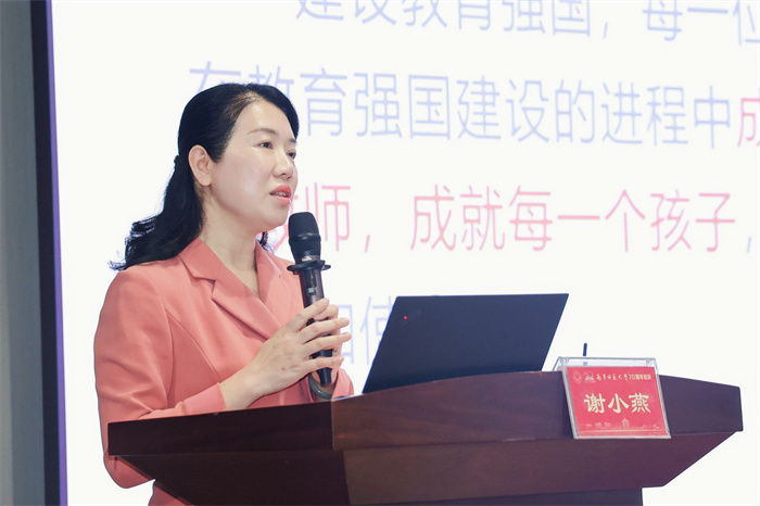 ▲南宁市滨湖路小学教育集团党委书记、总校长谢小燕作题为《守正创新 筑梦未来:学校文化的传承、发展与创新》的主旨报告