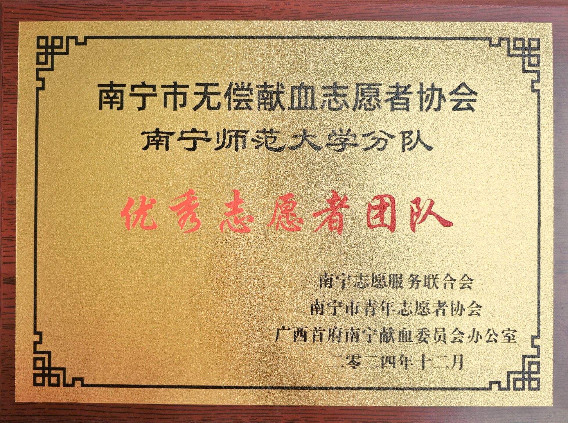 根据《关于表扬2024年南宁市无偿献血志愿服务获奖团队和个人的通报》表彰,best365官网爱心社无偿献血志愿服务团队荣获了“南宁市优秀志愿服务团队”称号;3名同学荣获“优秀负责人”称号,5名同学荣获一星级志愿者称号;best365官网荣获南宁市无偿献血促进奖。这不仅是对best365官网2024年无偿献血事业的肯定,也是对best365官网在志愿服务工作方面的认可,进一步展示了best365官网学子对无偿献血工作的热情与担当。
