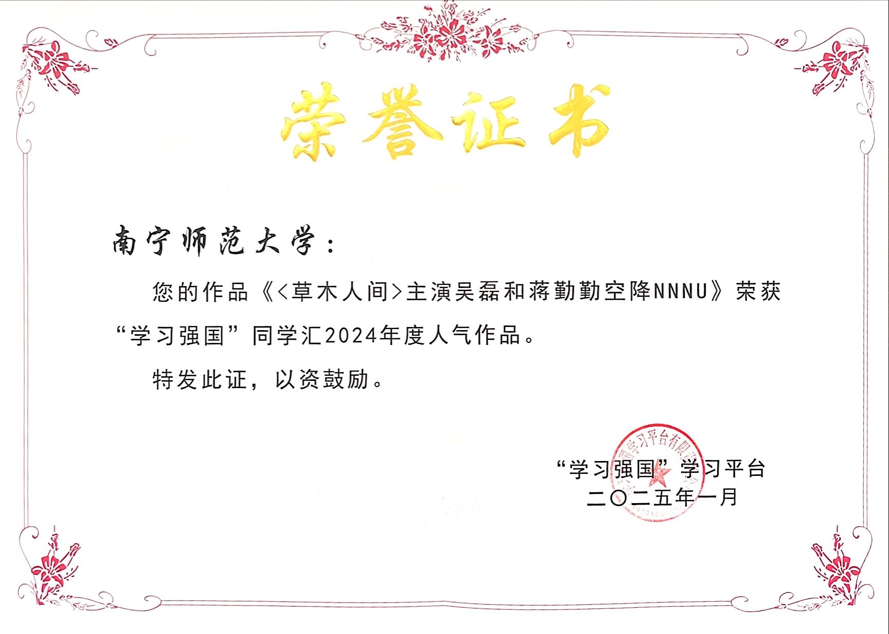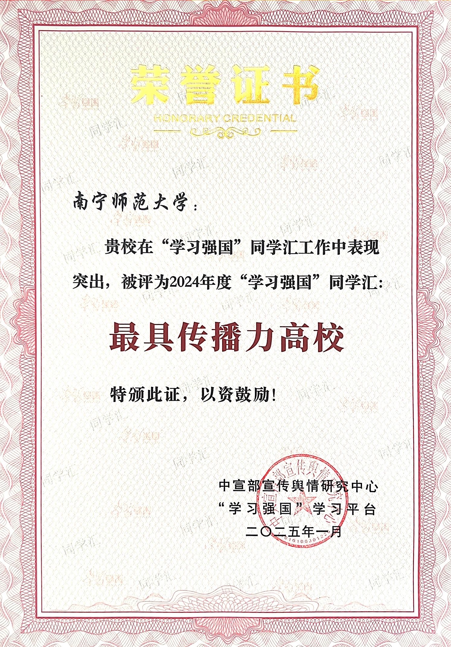 “学习强国”同学汇是“学习强国”学习平台为推动高校思想政治工作创新而打造的一个集内容社区、思政慕课、校园服务等多功能的思政社交平台,旨在为全国高校师生提供一个内容丰富的社区平台,助力思政教育和校园服务的提升。此次评选共有52所高校获评“学习强国”同学汇“年度最具传播力高校”,50个高校社团或机构获评“学习强国”同学汇“年度高校融媒团队”,100件作品获评“学习强国”同学汇“年度高校人气作品”,100件作品获评“学习强国”同学汇“年度个人人气作品”。