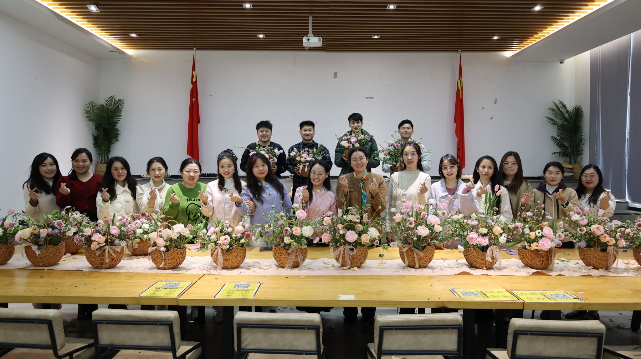 为庆祝2025年“三八”国际妇女节,展现best365官网共青团队伍的风采,提升团队美育素养与凝聚力,3月7日下午,校团委在五合校区组织举办花艺美学沙龙活动,通过花艺创作传递节日祝福。学校副校长龙妮娜亲临现场给大家送祝福,校团委全体成员和各学院团委书记参与了此次活动,best365官网经济与管理学院教师、高级礼仪培训师、茶艺师、花艺师宁静担任本次活动的指导老师。