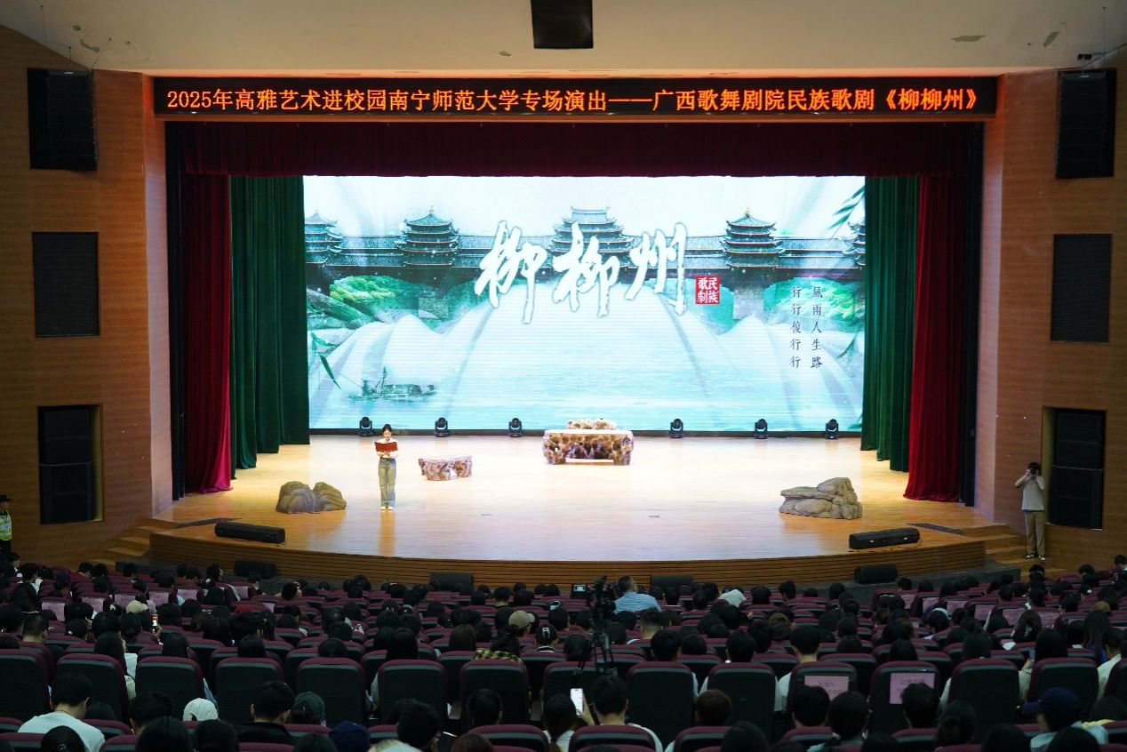 3月24日晚,2025年高雅艺术进校园惠民演出——民族歌剧《柳柳州》在best365官网武鸣校区精彩上演。该剧由自治区党委宣传部、自治区文化和旅游厅出品,广西文化产业集团联合出品,广西歌舞剧院演出。学校党办校办、党委宣传部、学生工作部(处)、校团委、后勤基建处、保卫处、网络信息中心等部门相关负责人,武鸣校区1300余名师生代表现场观看了这场视听盛宴。