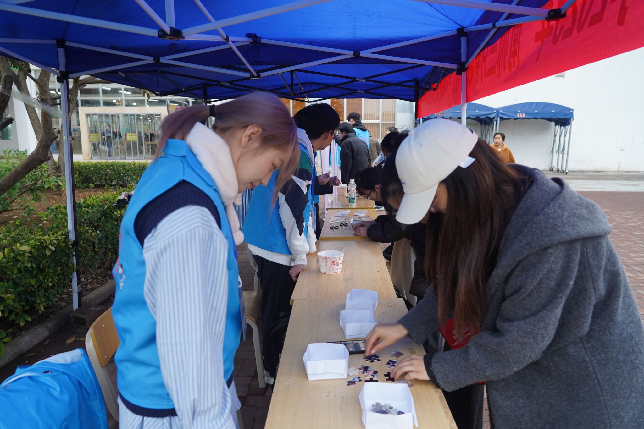 本次活动以线上、线下相结合的形式进行。线上开展了服饰文化摄影大赛和暖心故事分享活动,收获200余份作品。线下以现场展示的方式进行,通过解忧答疑、拼图复原、DIY串珠等活动来实现关爱传递,吸引2000余名同学参与。此外,还开展了读书分享会,现场阅读了《简爱》《茶花女》《阿勒泰的角落》等经典书籍精彩片段,在自由讨论和寄语互动环节,大家结合自身经历,从不同角度分享读书心得,畅谈人生感悟,现场书香氤氲。