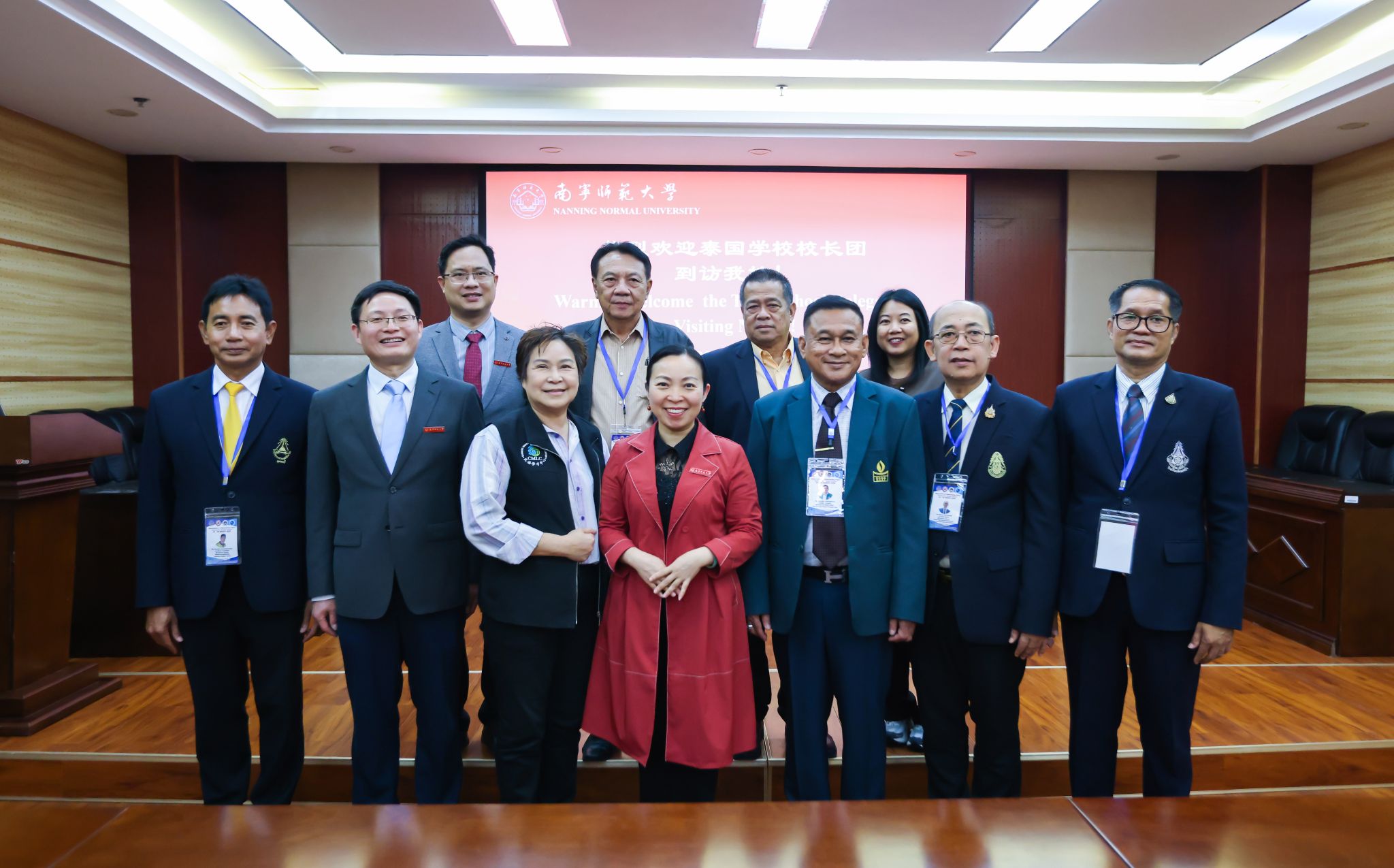 3月24日下午,泰国素攀武里小学教育服务区办公室主任及泰国素攀武里莎完莹学校、泰国素攀武里堪纳苏特苏卡利亚学校、泰国素攀武里堪恰纳琵色维迪亚莱学校校长团一行20人到best365官网访问。学校副校长龙妮娜、国际交流合作处(国际教育学院)相关负责人在明秀校区图书馆二楼会议室接待了代表团一行,并召开了座谈会。