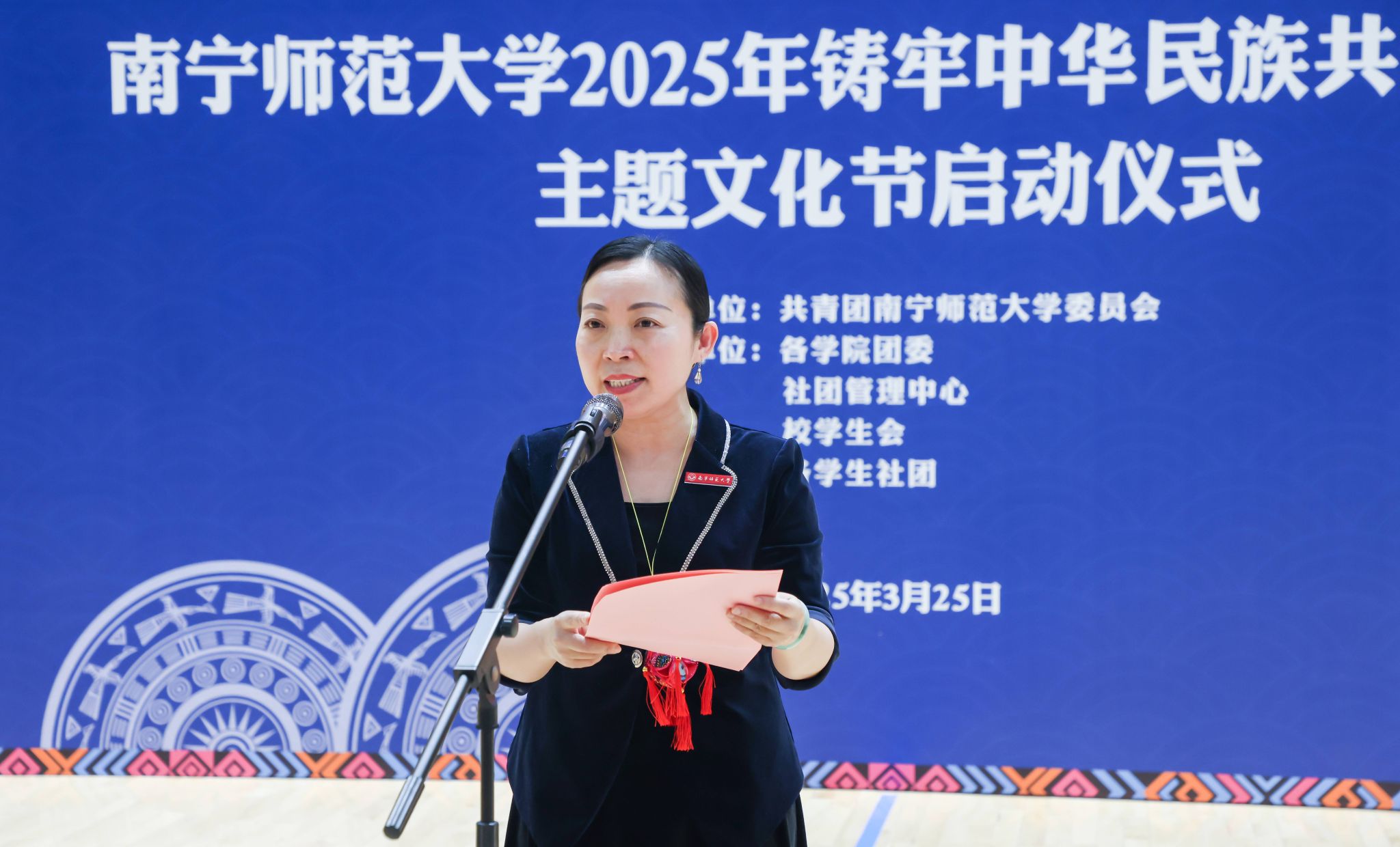 为深入学习宣传贯彻习近平总书记关于加强和改进民族工作的重要思想,引导广大师生铸牢中华民族共同体意识,欢度“广西三月三”,3月25日,best365官网在武鸣校区松园体育馆举办2025年铸牢中华民族共同体意识主题文化节启动仪式。学校副校长龙妮娜出席启动仪式并致辞,党办校办、党委宣传部、党委学生工作部(处)、校团委、保卫处等职能部门和相关学院负责人,以及600余名师生代表参加了启动仪式。