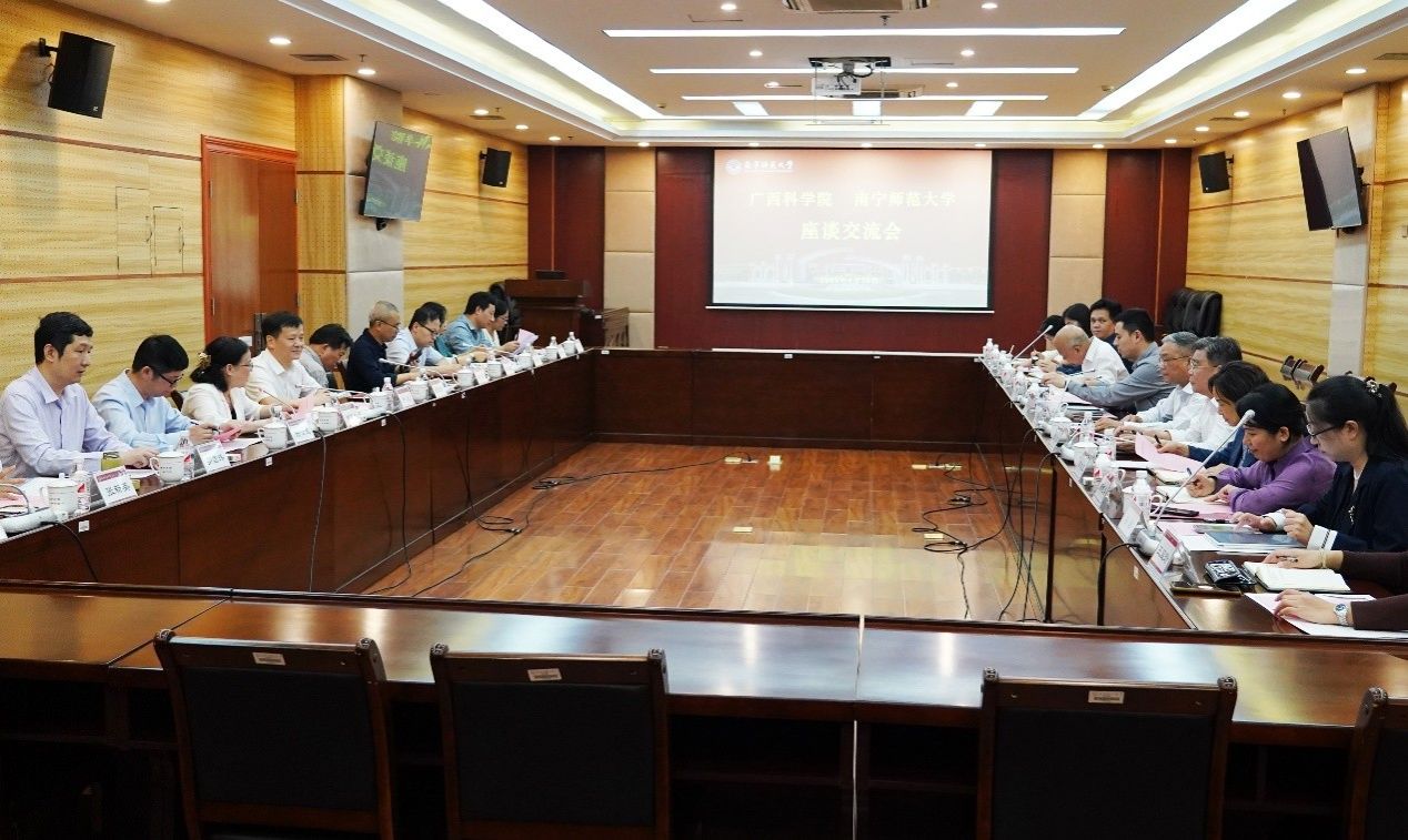 4月10日下午,广西科学院党组成员、副院长吕郁彪一行来best365官网调研,并就学科和产业领域合作开展座谈交流。best365官网副校长卢远,科研管理处、地理与海洋研究院、自然资源与测绘学院、地理科学与规划学院以及环境与生命科学学院等相关单位负责人及教师参加了会议。座谈会由科研管理处处长黄燕敏主持。