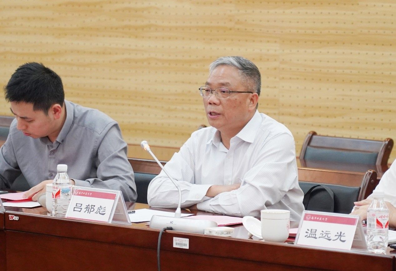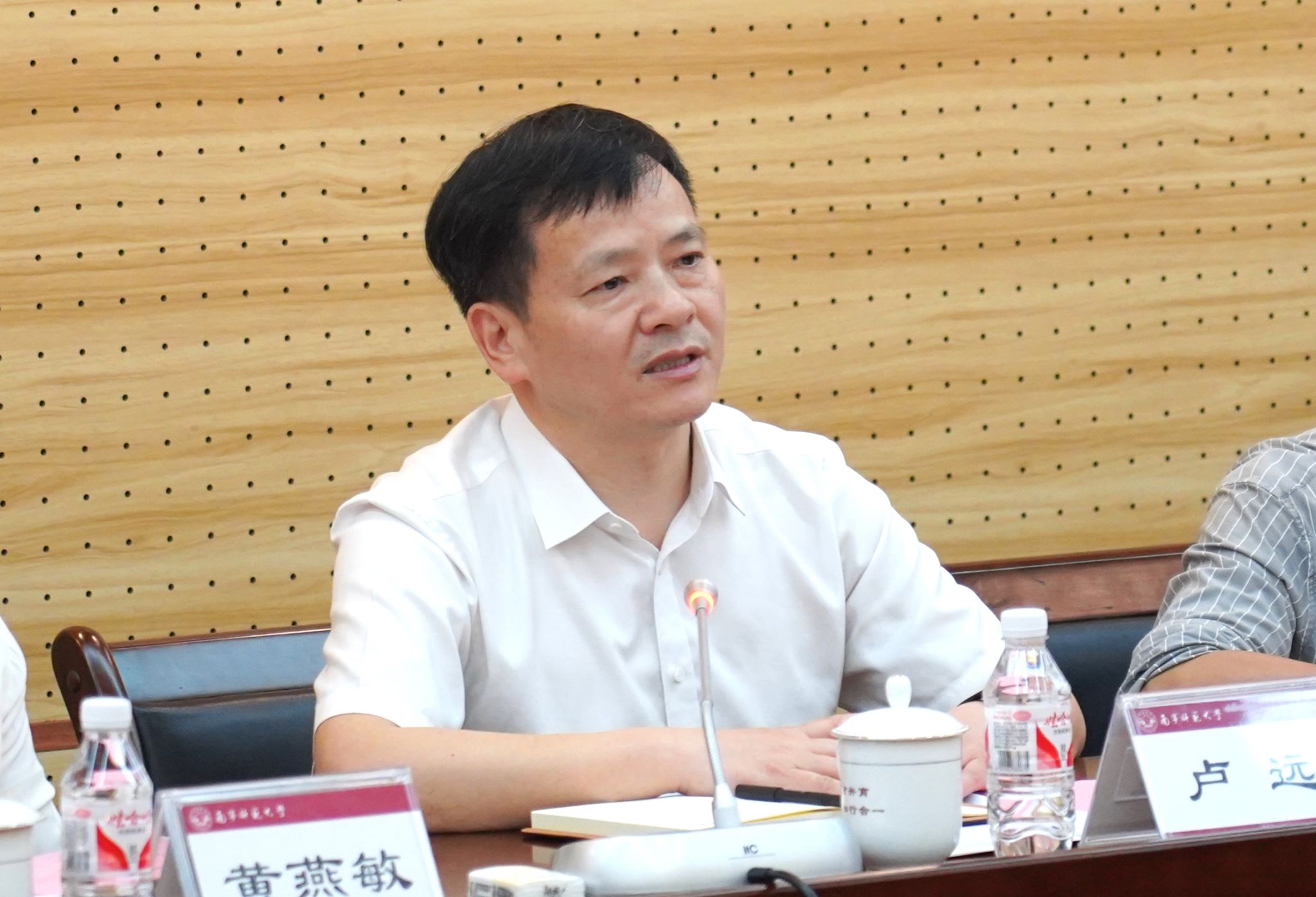 座谈会上,卢远对吕郁彪一行的到来表示热烈欢迎,并详细介绍了学校地学部近年来的发展情况以及在科研工作、平台建设等方面取得的成绩。吕郁彪介绍了广西科学院的基本概况,包括广西科学院研究领域、师资力量、对外合作基地、科技成果等情况,希望通过与best365官网的合作,进一步加强双方在学科和产业领域的交流,开展多领域多层次的合作,共同推动科技成果转化和产业升级。