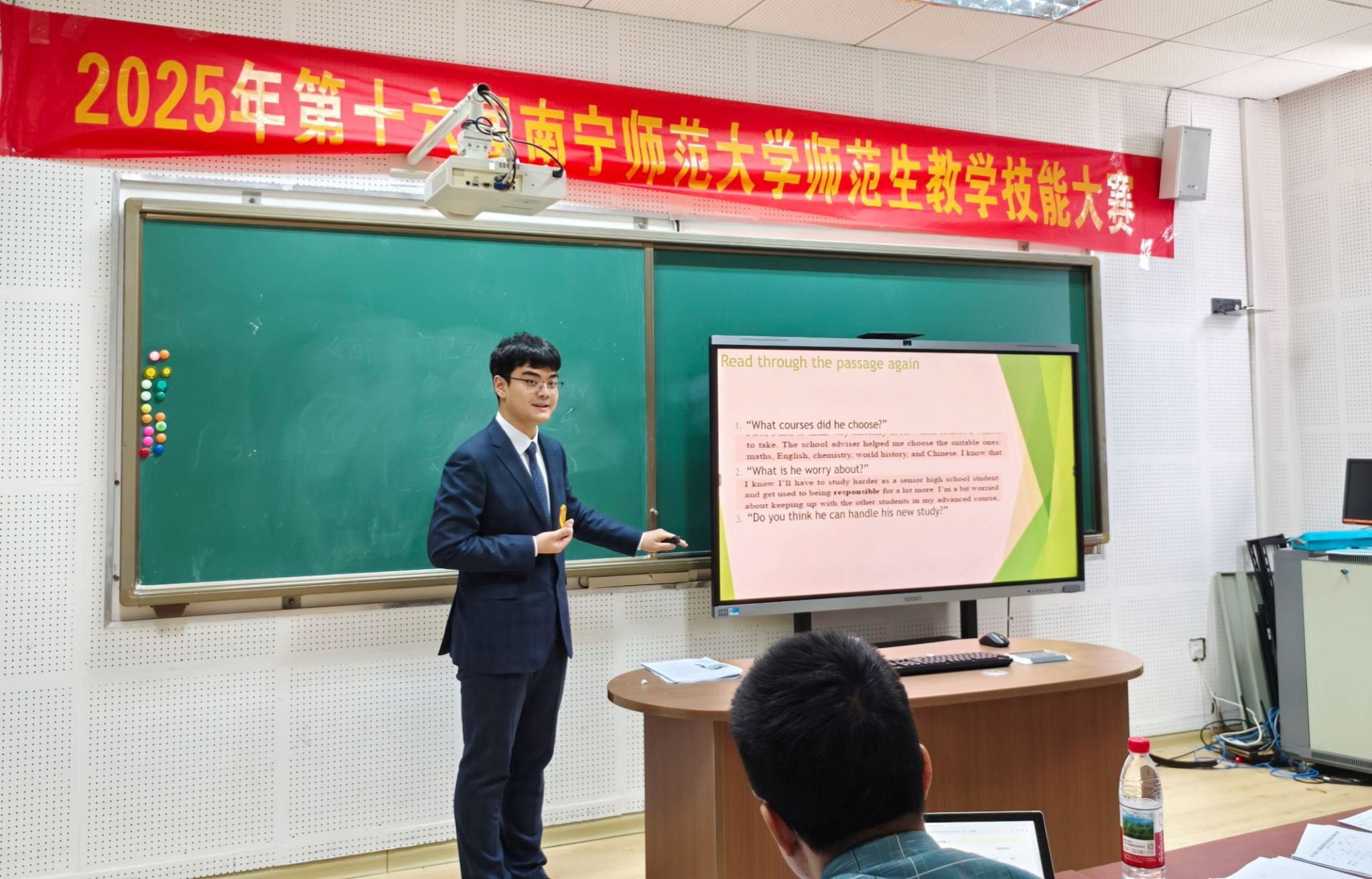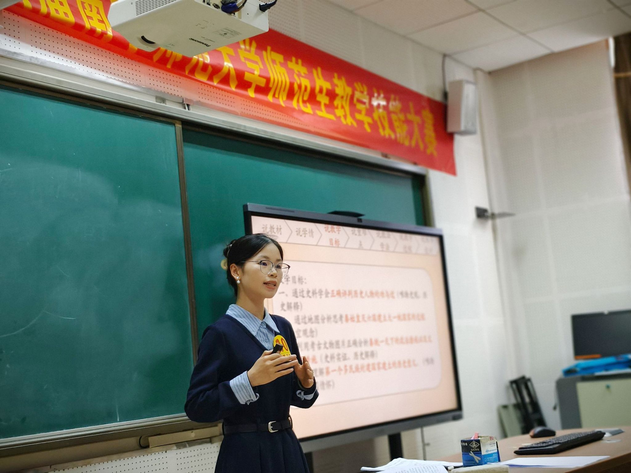 大赛严格对标全区师范生教学技能竞赛标准,设置教学设计、说课、模拟上课和板书三个竞赛环节,覆盖学前、小学、初中、高中和职师等多个学段和学科。参赛选手通过现场抽签确定比赛顺序和内容,每个竞赛环节都要求在限定的时间内完成,全面检验了师范生的教学基本功和综合素养。