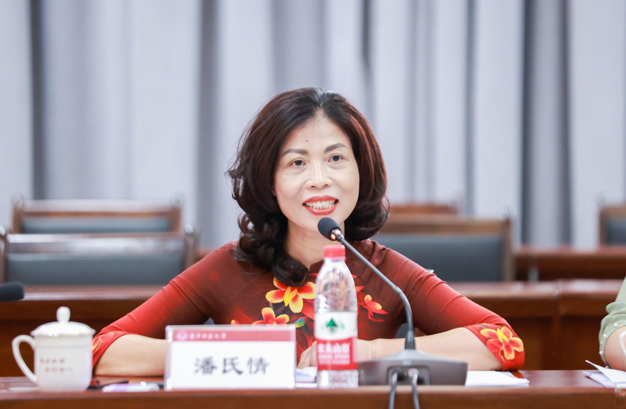 潘氏情对学校的热情接待表示感谢,对best365足球官网近年来取得的成绩感到赞叹。她简要介绍了越南雄王大学近年来发展情况及国际化办学优势和特色,表达了深化良好教育合作关系,实现合作共赢的愿景,希望在师生互访、人文交流、文化传播等方面多元交流赋能,为两国的友好合作培养更多优秀的专业人才。