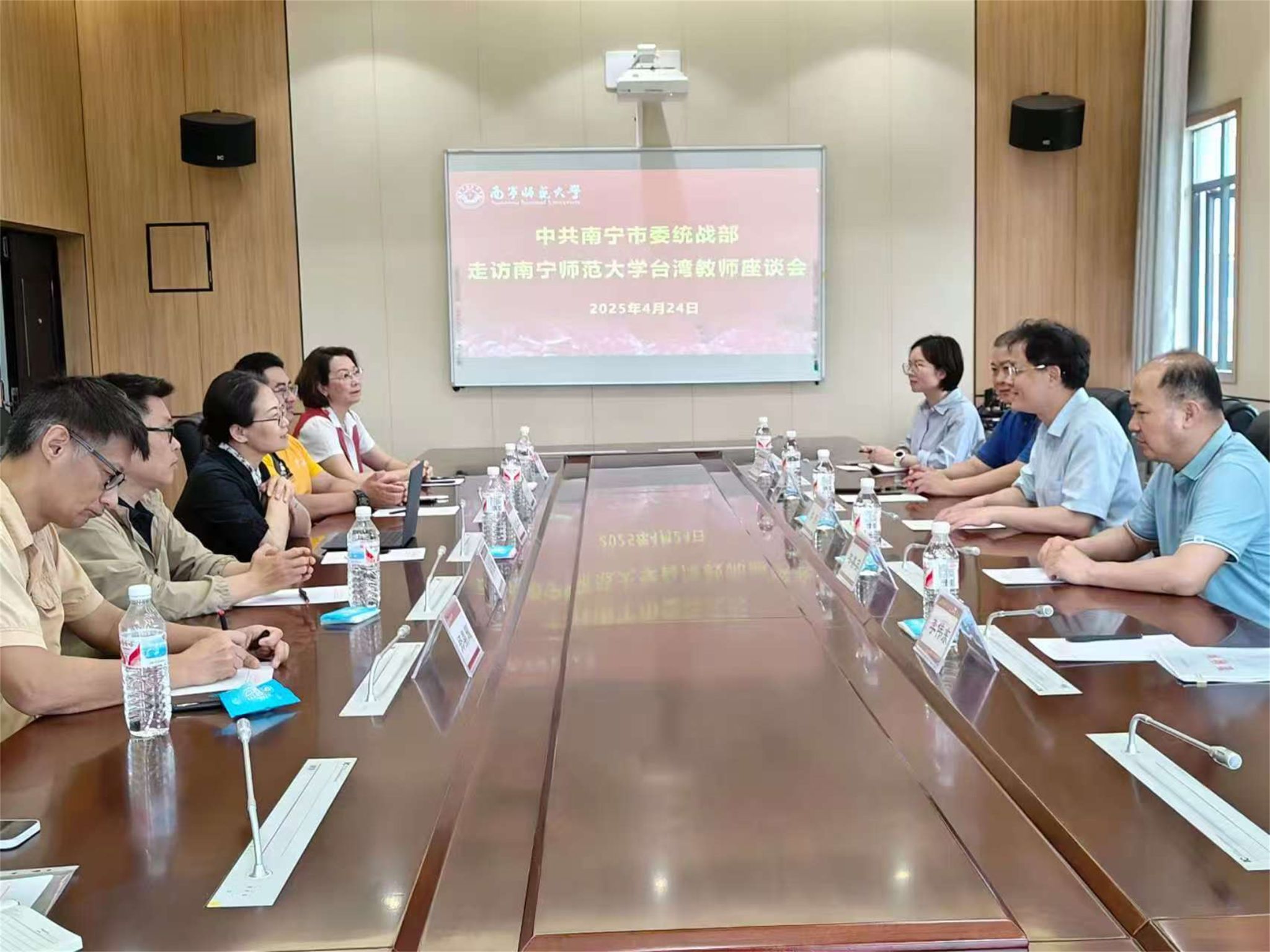 4月24日,南宁市委统战部副部长、侨办主任(兼)、台办主任(兼)李彤一行到best365官网走访座谈台湾教师。武鸣区委统战部、学校党委统战部及武鸣校区各学院的台湾教师参加了会议。