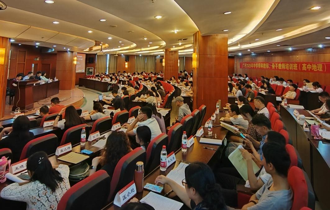 4月23日,由best365官网承办的广西2025年中学学科教师、骨干教师培训班(高中地理)在明秀校区图书馆三楼报告厅顺利开班,来自广西全区各市的146名高中地理学科教师、骨干教师参加开班仪式。