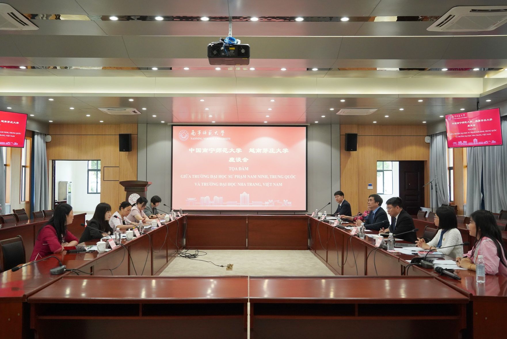 龙妮娜对代表团的来访表示热烈欢迎。她简要介绍了学校近年来各项事业发展,特别是学校教育对外开放发展取得的新成就。她指出,中越两国是山水相连的社会主义邻邦,2025年是中越两国建交75周年,也是“中越人文交流年”,希望两校站在中越关系的新起点上,以“中越人文交流年”为契机,进一步密切合作关系,共同提升教育国际交流与合作水平,为构建具有战略意义的中越命运共同体贡献力量。
