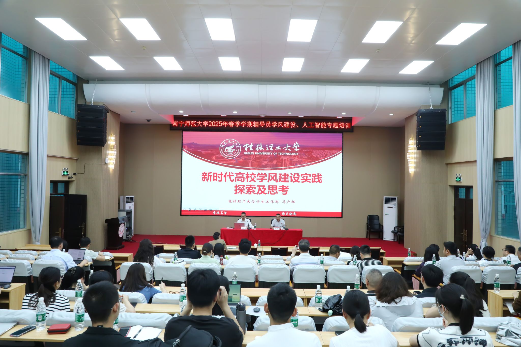 首场培训由桂林理工大学学生工作部冯广辉部长主讲,学工部(处)副部(处)长何健主持。冯广辉以《新时代高校学风建设实践与探索》为题,系统阐释了新时代学风建设的核心内涵,分享了桂林理工大学“四进三低六高两提升”特色实践,介绍了浙江大学“朋辈辅学”、华南理工大学“学科竞赛”等兄弟院校经验。他表示,辅导员应成为学风建设的“引领者、组织者、服务者”,联动教师、家长、学生骨干构建协同育人新格局。