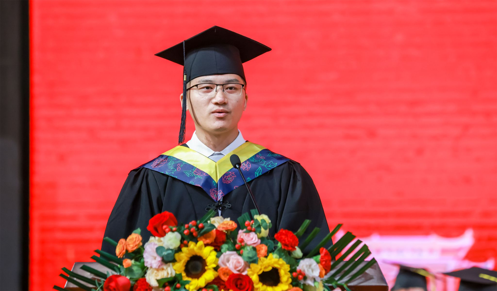 地理科学与规划学院罗国玮老师作为教师代表发言。他希望毕业生永远保持学习的热情、保持乐观积极的心态,勇于担当,积极奉献,在新的征程中继续追光逐梦、砥砺前行,创造出更加辉煌的业绩,为母校争光添彩。