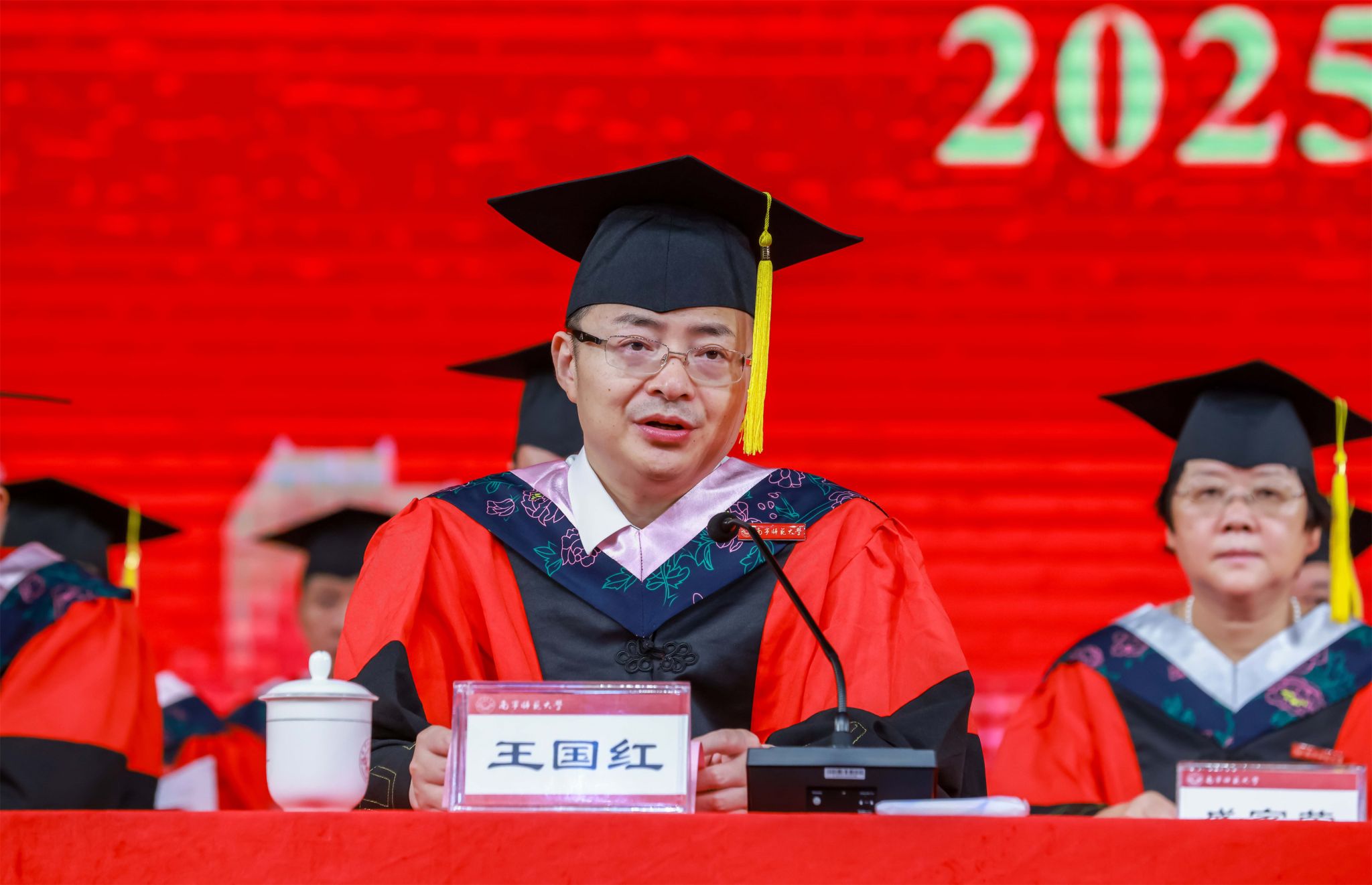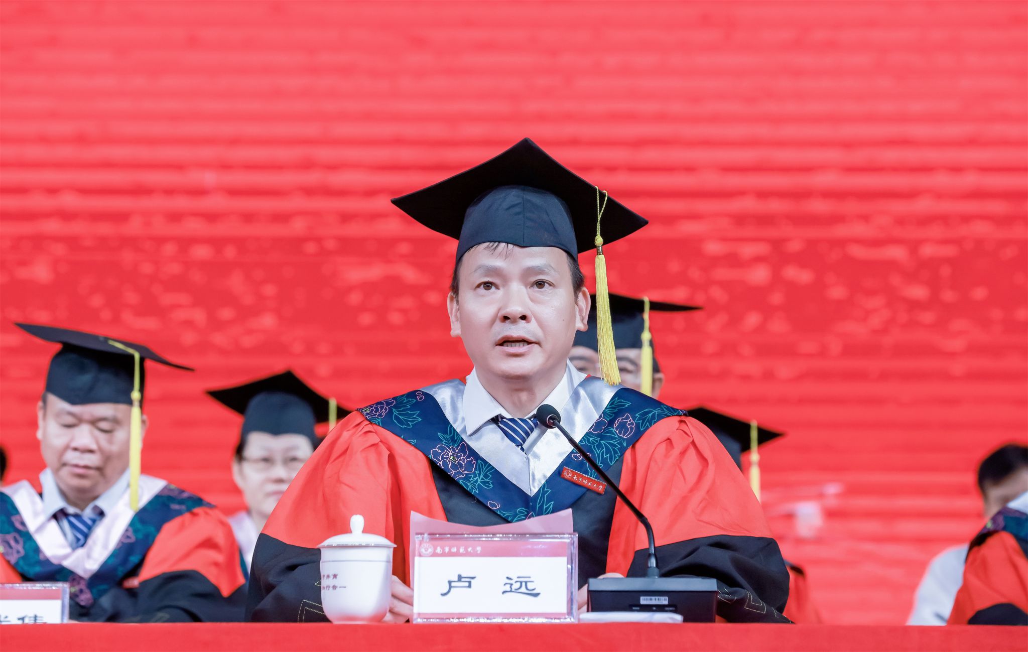 物理与电子学院韦师同学、教育科学学院肖沅依同学分别代表本科生、研究生全体毕业生发言。他们分享了满载收获与感动的在校求学成长经历,表达了对母校和老师的不舍与感激,表示未来将怀揣“德才并育,知行合一”的精神,伴着“待青春梦圆,郁郁桃李,芳华人间”的南师歌声,不负韶华,挺膺担当,踔厉奋发,逐梦远航。