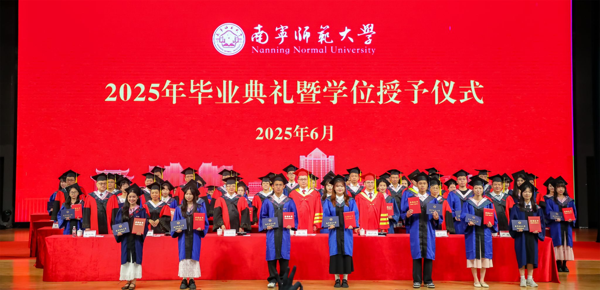 桃李成栋,鲲鹏九霄;凤凰花开,骊歌唱响。6月20日上午,best365官网在武鸣校区举行2025年毕业典礼暨学位授予仪式。学校领导张鹏、隆广庆、王国红、李美清、龙妮娜、卢远、梁家斌,学校学位评定委员会委员、各有关职能部门负责人,教师代表、家长代表、校友代表及2025届毕业生齐聚一堂,共同见证2025届毕业生圆满完成学业,热烈欢送他们扬帆远航。典礼由学校副校长龙妮娜主持。
