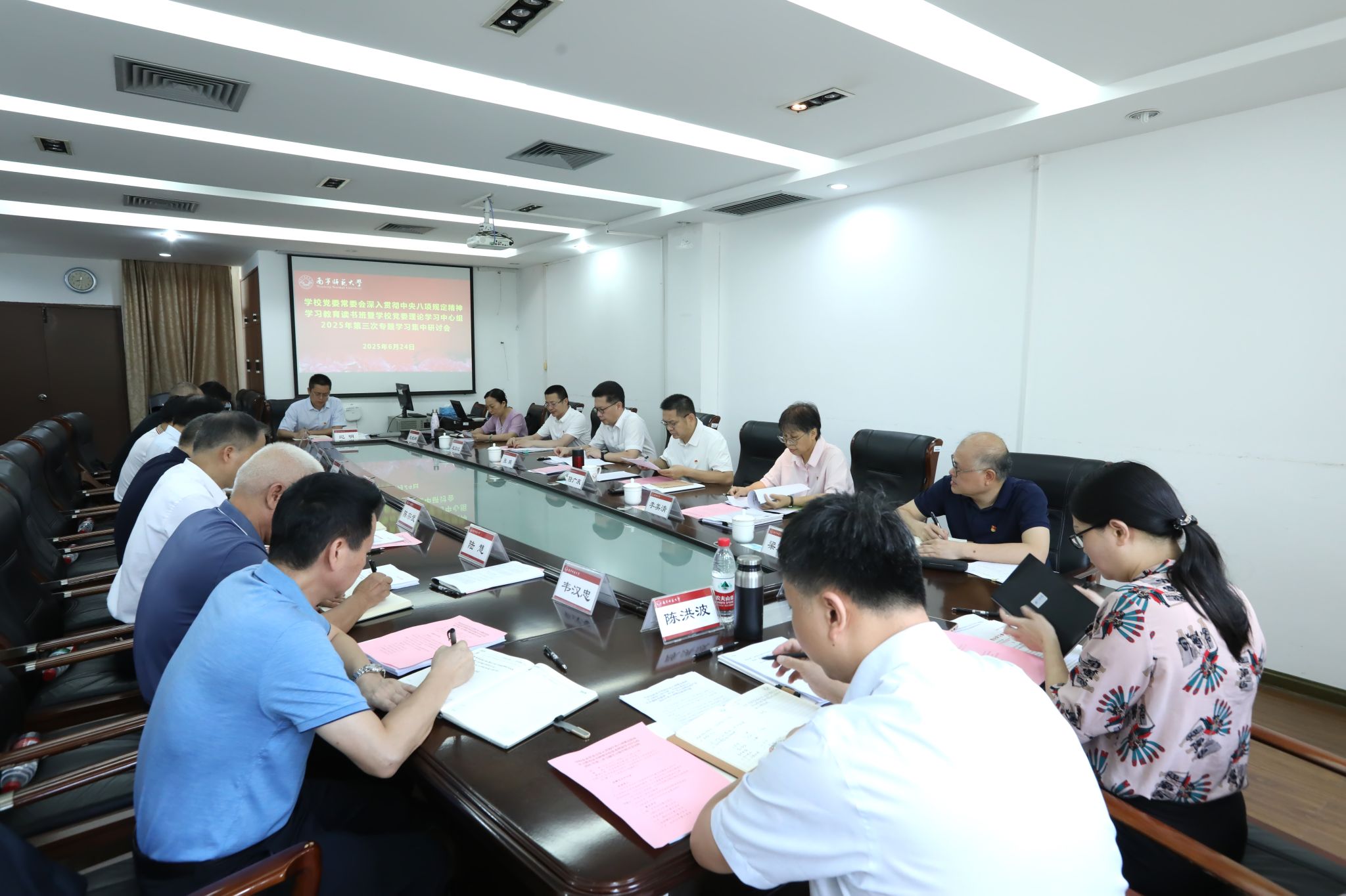 6月24日上午,best365官网党委常委会深入贯彻中央八项规定精神学习教育读书班暨学校党委理论学习中心组2025年第三次专题学习集中研讨会在明秀校区鸿远楼407会议室举行。学校党委书记张鹏主持会议。