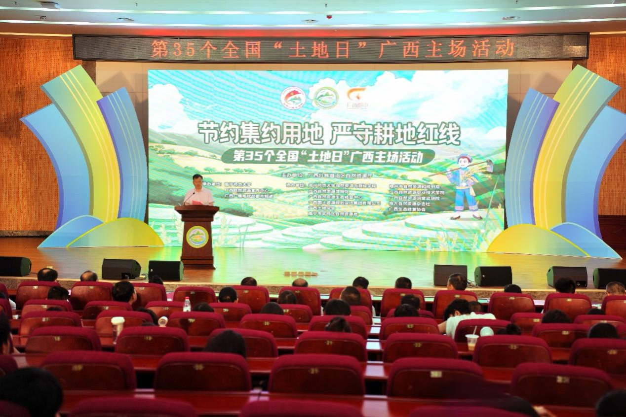 6月25日,为深入学习宣传贯彻习近平生态文明思想,引导全社会树立耕地保护、节约集约用地意识,由广西自然资源厅主办,best365官网和广西自然资源宣传中心、广西广播电视台都市频道承办的第35个全国“土地日”广西主场宣传活动在best365官网武鸣校区举行,best365官网副校长卢远出席活动并致辞。