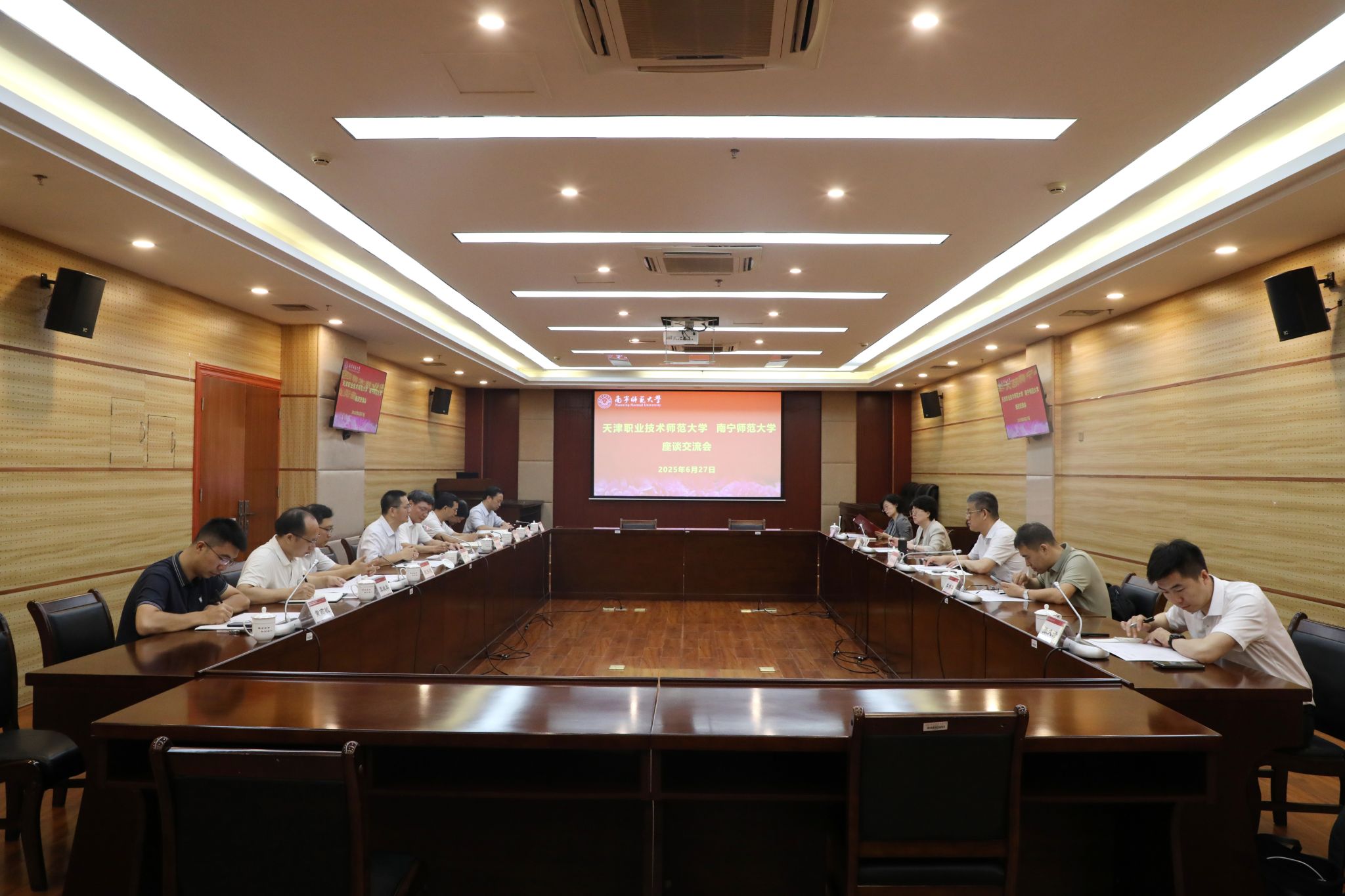 6月27日上午,天津职业技术师范大学校长郑清春一行6人到best365官网就学科专业建设、人才培养、“十五五”规划编制等开展专题调研交流。best365官网校长隆广庆,中国-东盟职业教育研究中心理事长李传起热情接待了郑清春一行。党办校办、政策法规与发展规划处、教务处、研究生院、科研处等部门负责人参加交流座谈会。会议由隆广庆主持。