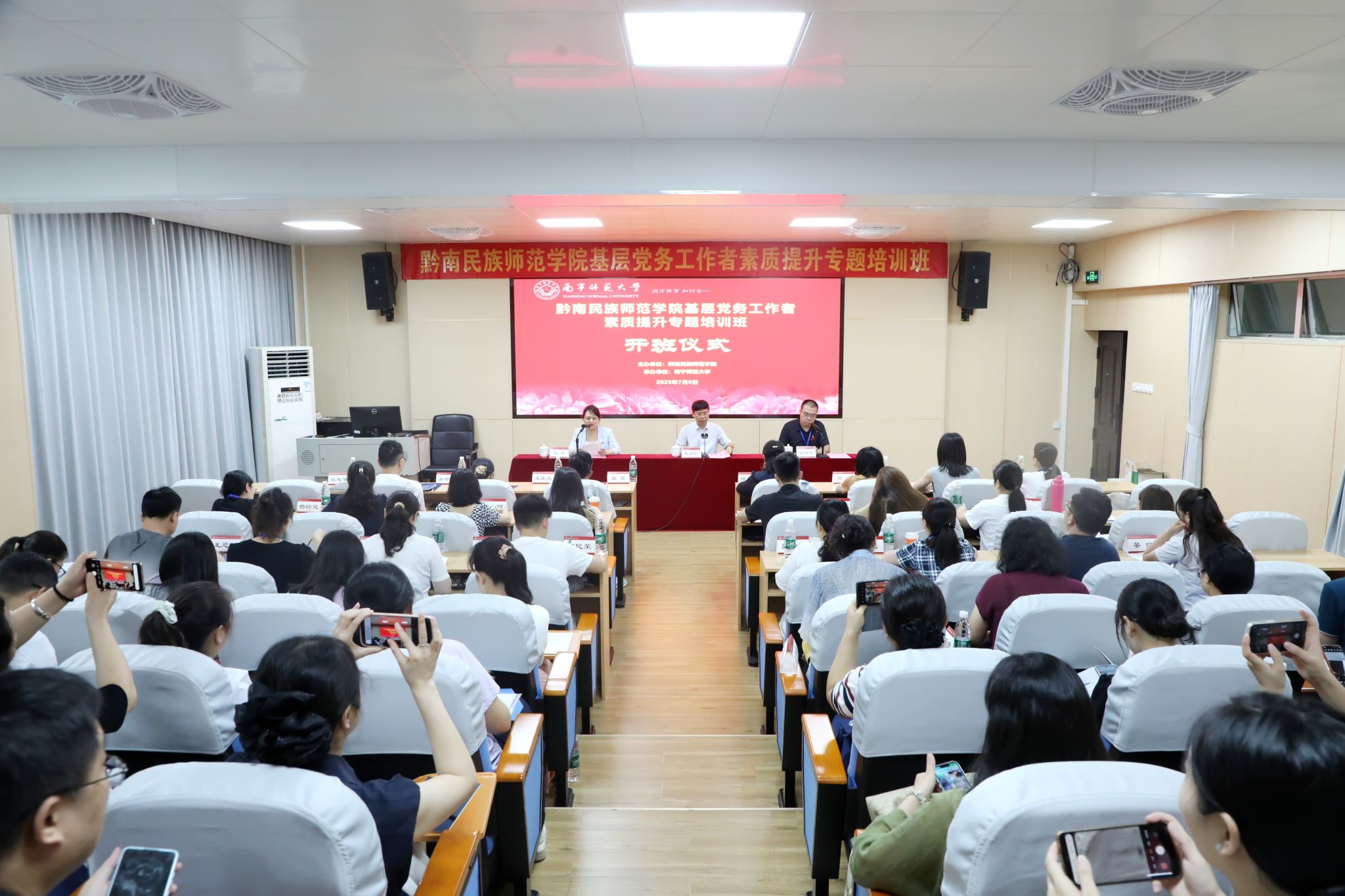 7月9日,“黔南民族师范学院基层党务工作者素质提升专题培训班”在best365官网明秀校区顺利开班。学校副校长王国红为学员们讲授第一堂课,50名学员参加培训。