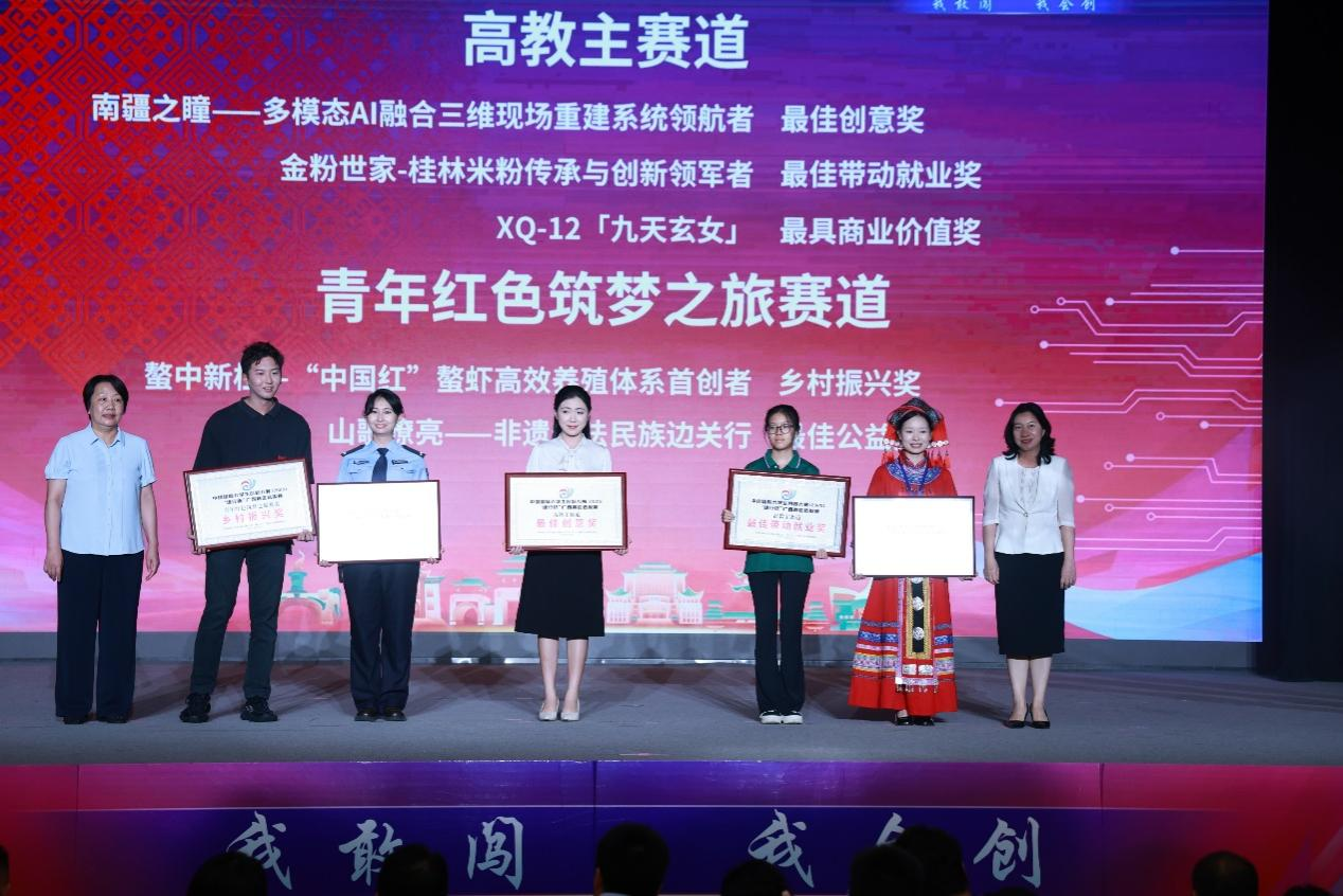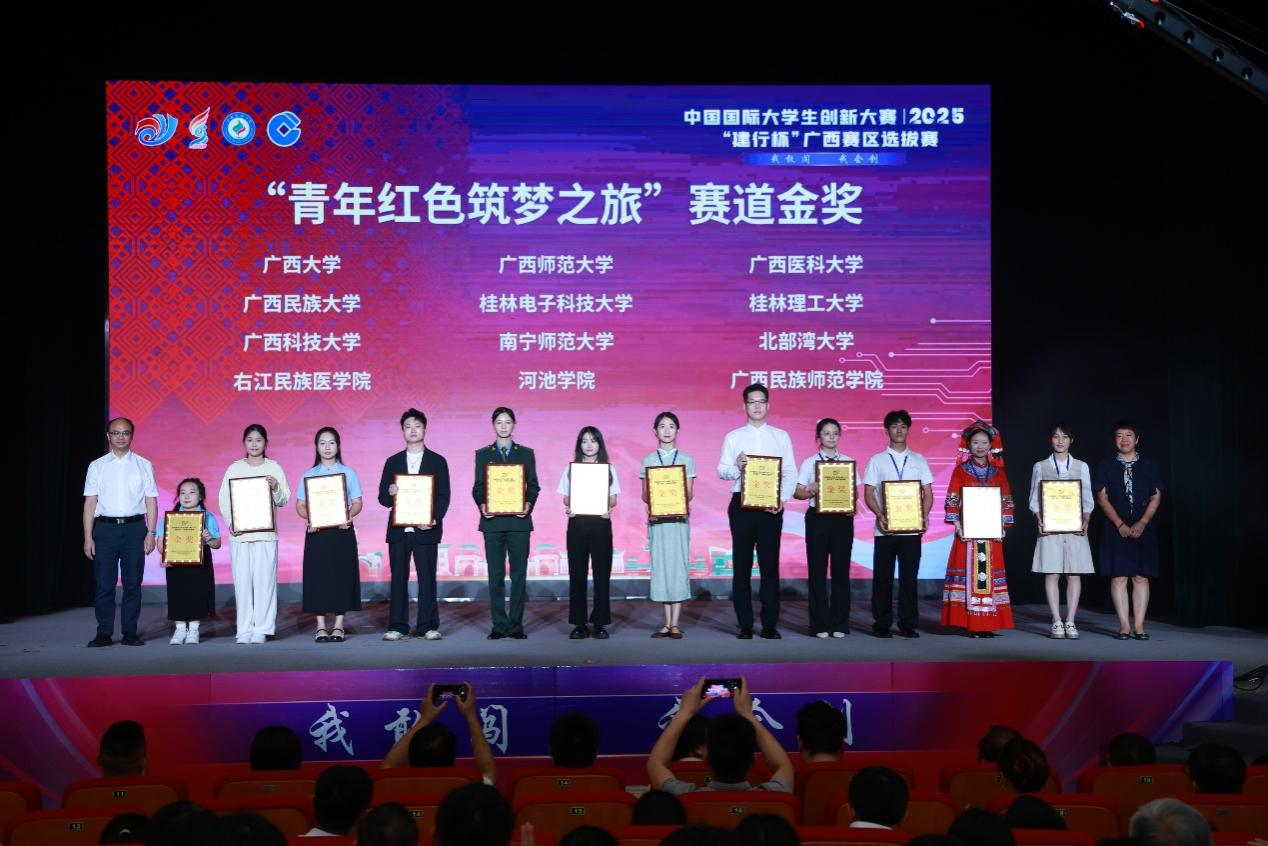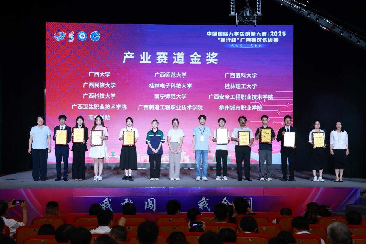 7月15日,中国国际大学生创新大赛(2025)广西赛区选拔赛现场总决赛(以下简称 “区赛”)在广西民族大学拉开帷幕。best365官网学子共斩获金奖17项、银奖11项,其中《山歌嘹亮——非遗普法民族边关行》项目摘得最佳公益奖,用亮眼成绩诠释了“以赛育人”。