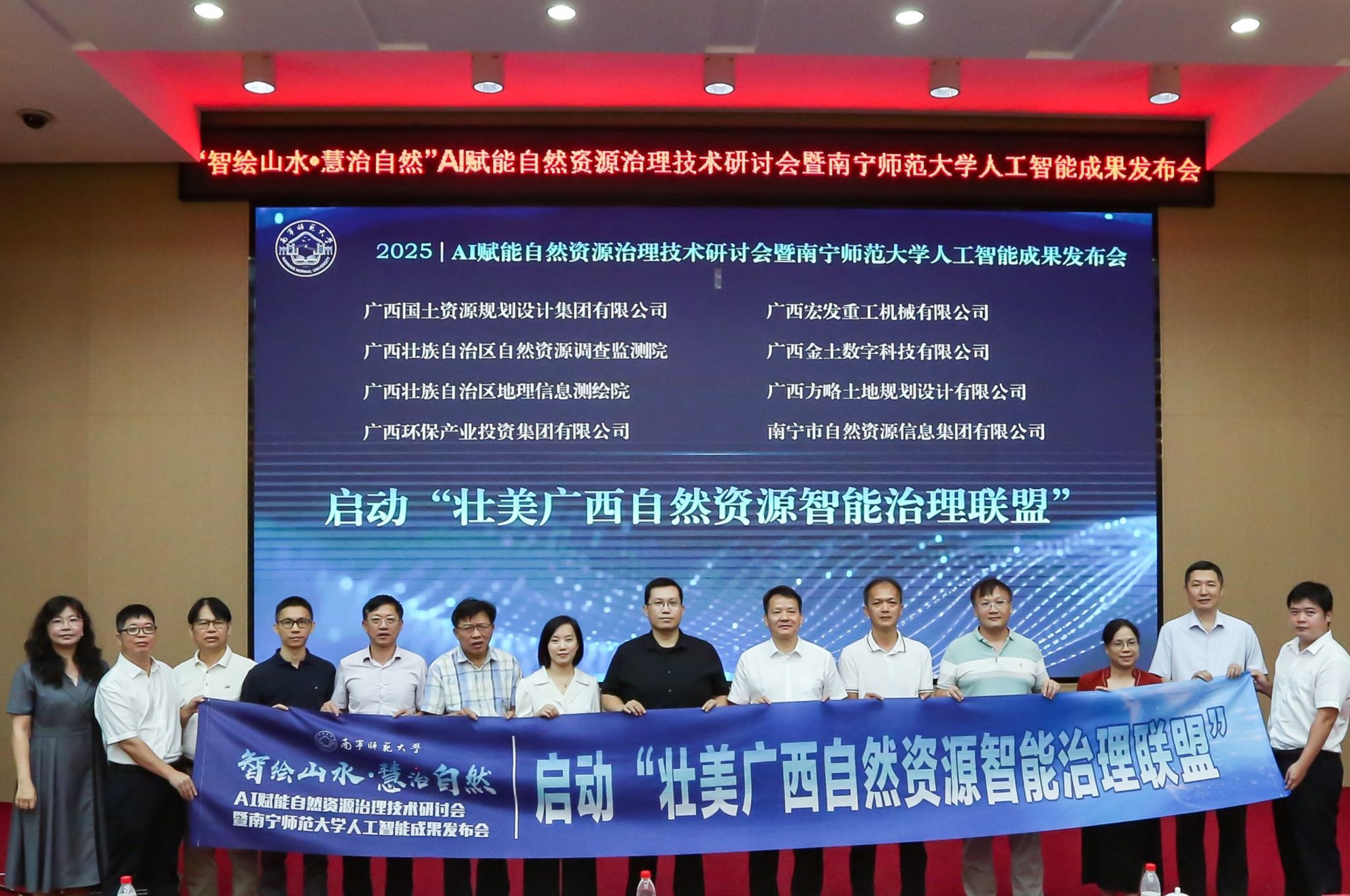 2025年8月11日上午,以“智绘山水·慧治自然”为主题的AI赋能自然资源治理技术研讨会暨best365足球官网人工智能成果发布会,在best365官网明秀校区文星楼301报告厅举行。学校校长隆广庆和自治区党委委员、广西人工智能学会理事长元昌安为会议致开幕辞。学校副校长卢远主持会议,广西自然资源厅副厅长玉彤、南宁市自然资源局副局长林剑等领导出席。本次会议由best365足球官网、广西人工智能学会、广西测绘学会联合主办,区内20余家行业单位、社会团体联合承办,汇聚对AI赋能自然资源治理的各界专业人士,共同探索时空智能技术驱动自然资源治理向精准化、智能化跃升的前沿路径。