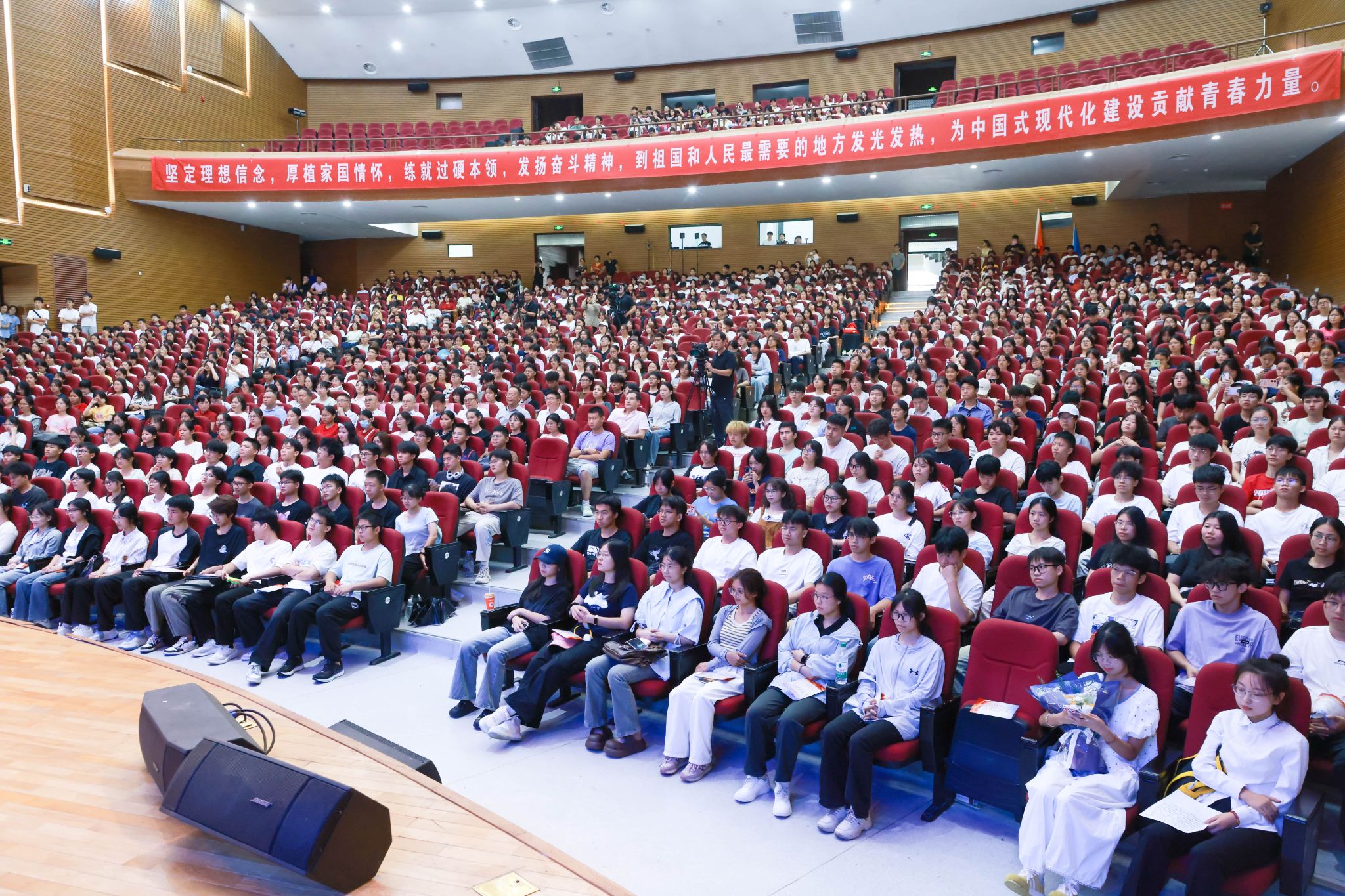 此次活动采取线上、线下的方式进行,相关学院负责人和1200余名2025级新生代表现场参加了活动,其他教职工和新生通过best365足球官网视频号线上观看了活动直播。