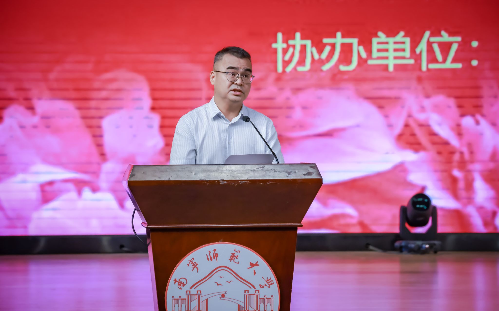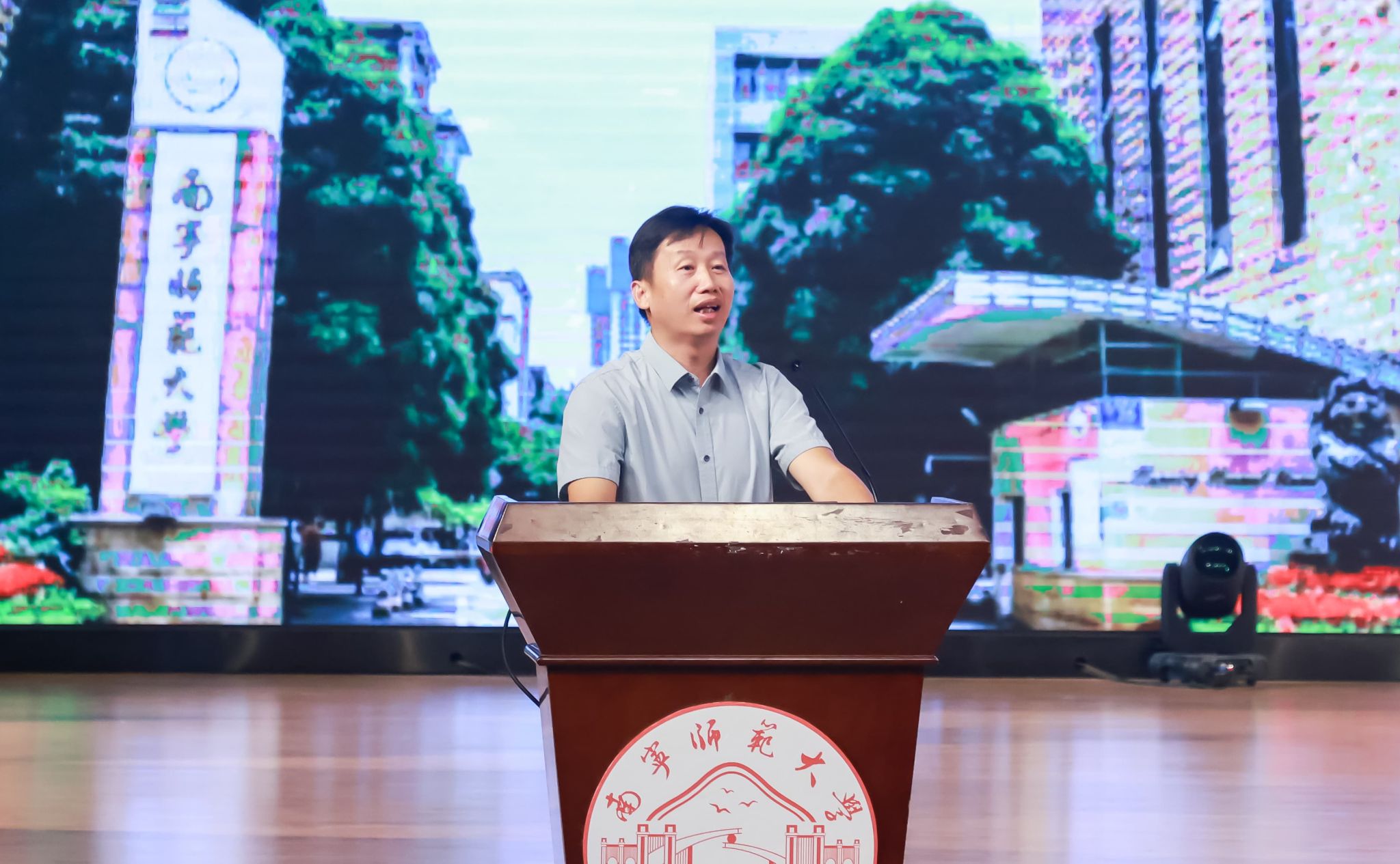 活动邀请了全国优秀教师、学校化学教育专业1996级校友、广西北流市高级中学正高级教师梁庆作主题分享。他以“铸魂启新程,匠心扎根育栋梁”为题,深情回顾了自己在母校的包容与激励下逐步成长为一名优秀教师的历程,分享了自己二十余年扎根县域高中教育、践行“眼中有人、启智润心”教育理念的动人故事,以及从教以来“拒绝躺平”、持续攀登的职业追求,鼓励新生珍惜大学时光,以“心有大我”立心、“终身学习”立身、“拒绝躺平”立业,踔厉奋发追求卓越。