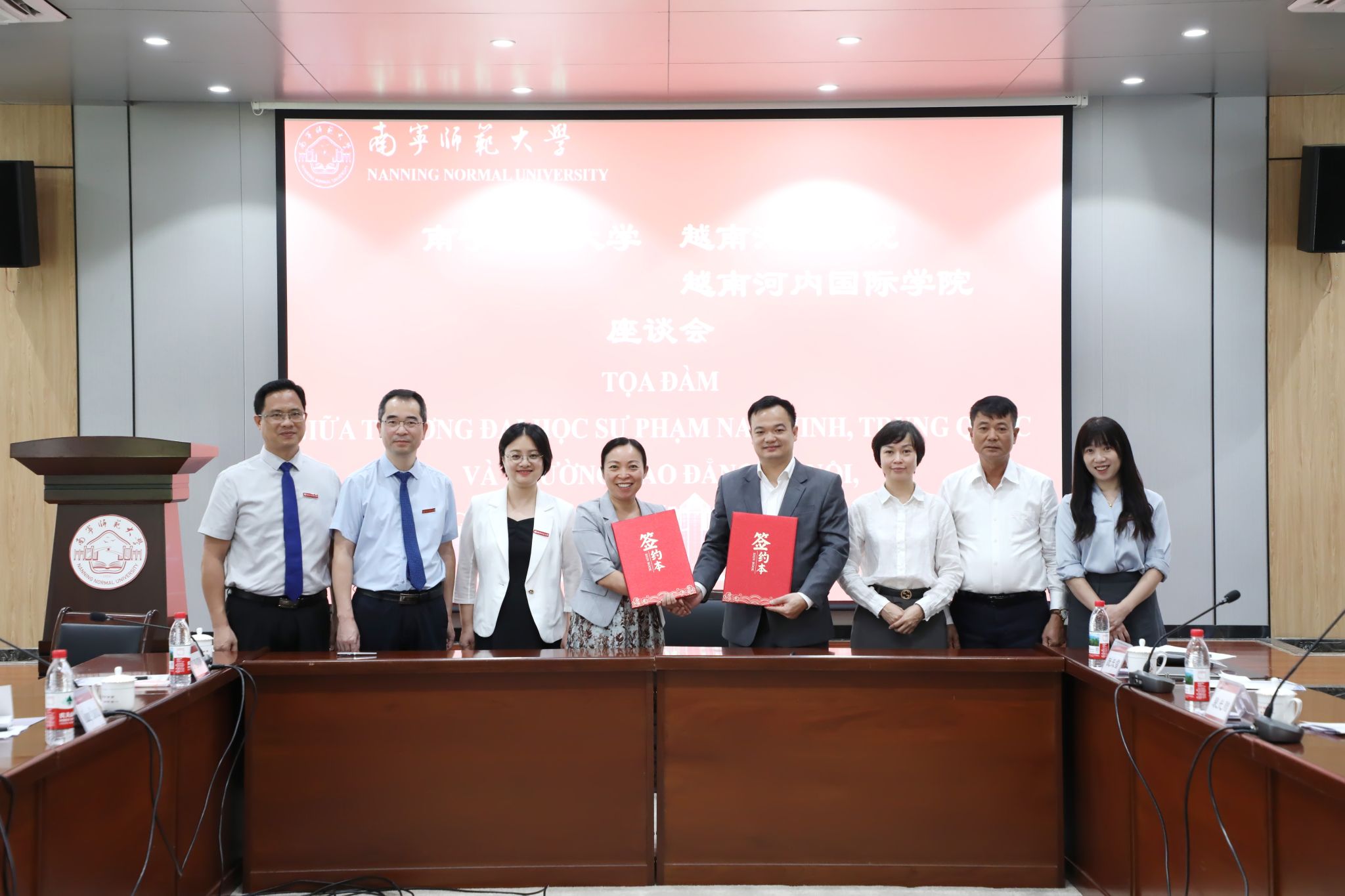 龙妮娜对代表团的来访表示热烈欢迎。她简要介绍了学校近年来各项事业发展情况,特别是教育对外开放取得的新成就。她指出,中越两国是山水相连的社会主义邻邦,今年正值中越建交75周年,也是“中越人文交流年”。best365官网作为广西C9高校,兼具师范与非师范学科的显著优势,拥有丰富的对外交流经验,尤其是与越南教育交流的深厚基础,以及多个特色鲜明的校区,是越南高校开展教育合作的理想伙伴。希望两校借助东盟博览会这一平台,以“中越人文交流年”为契机,建立教育合作关系,共同提升教育国际交流与合作水平,为构建具有战略意义的中越命运共同体贡献力量。