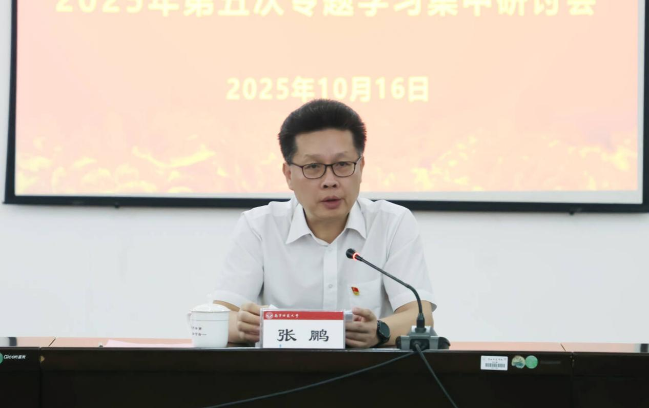 10月16日上午,学校党委理论学习中心组2025年第五次专题学习集中研讨会在明秀校区鸿远楼409会议室举行。学校党委书记张鹏主持会议。
