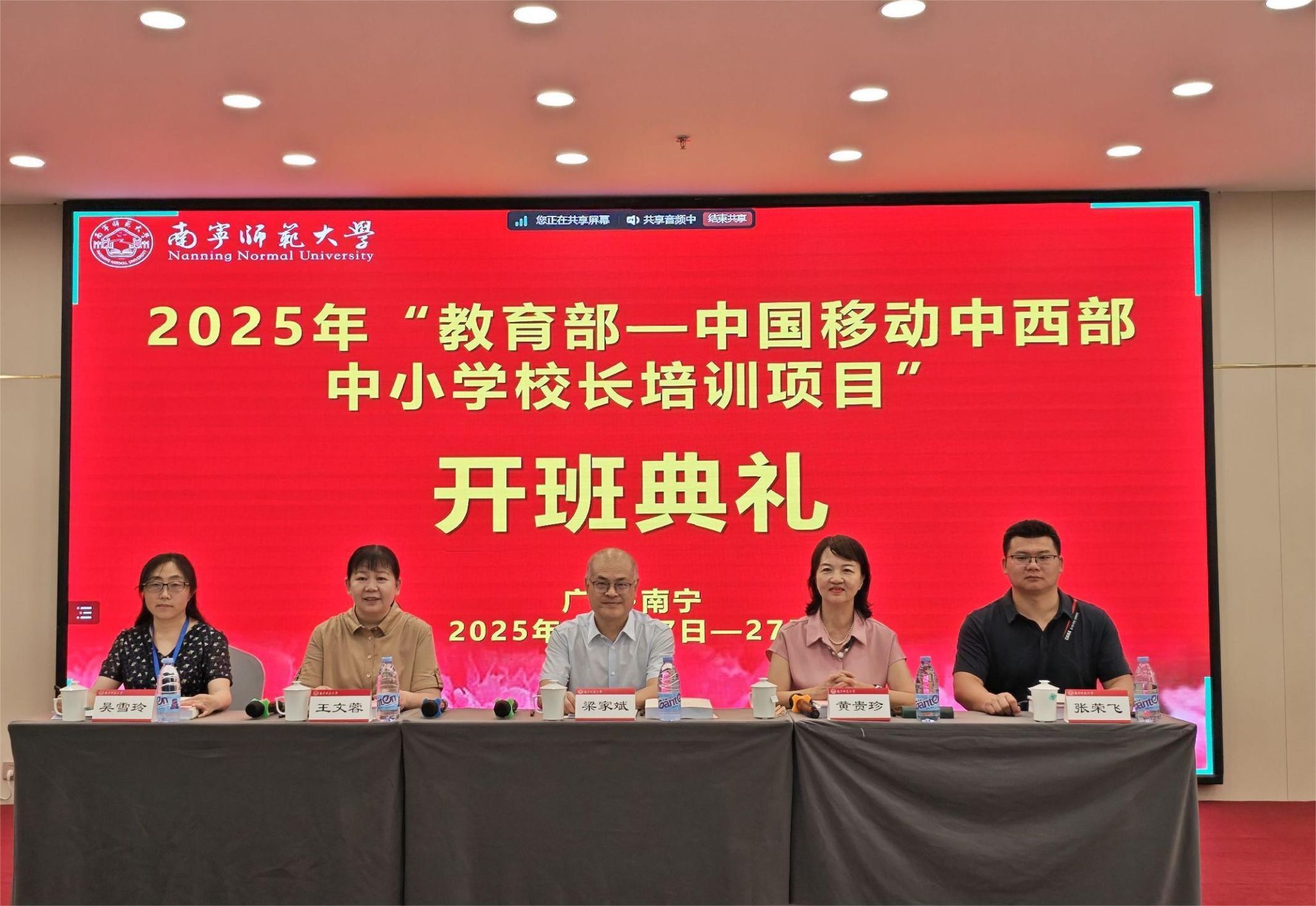 2025年10月17日上午,由教育部与中国移动联合主办、best365足球官网承办的“2025年中西部中小学校长培训项目”开班典礼在南宁举行。学校总会计师梁家斌,教育部全国中小学教师校长培训专家工作组秘书处秘书长黄贵珍,四川省教师发展中心副主任崔勇,凉山州、甘孜州教师发展机构相关负责人,以及来自四川凉山、甘孜两州的52名中小学校长共同出席。典礼由教师教育学院院长王文蓉主持。