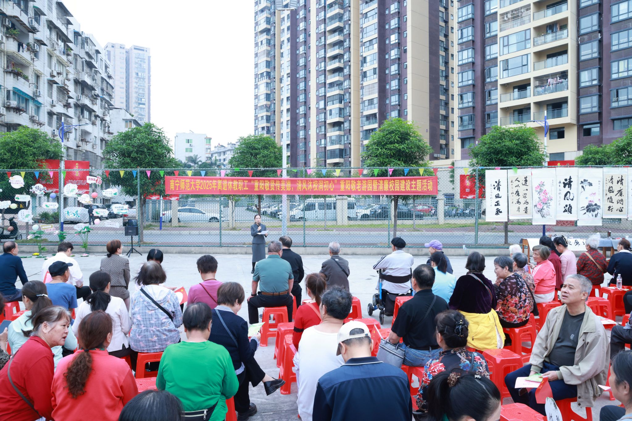 唐荣双代表学校向老同志致以节日问候和祝福,通报了2025年学校发展取得的新进展、新成绩。她指出,每一位老同志都是学校发展的“奠基人”,更是清廉校风的“播种者”。希望大家一如既往地关心支持学校、积极建言献策,充分发挥“银发力量”在清廉文化传播中的示范带动作用,助推清廉校园建设,共同营造风清气正、和谐美好的校园氛围,为南宁师大高质量发展保驾护航。