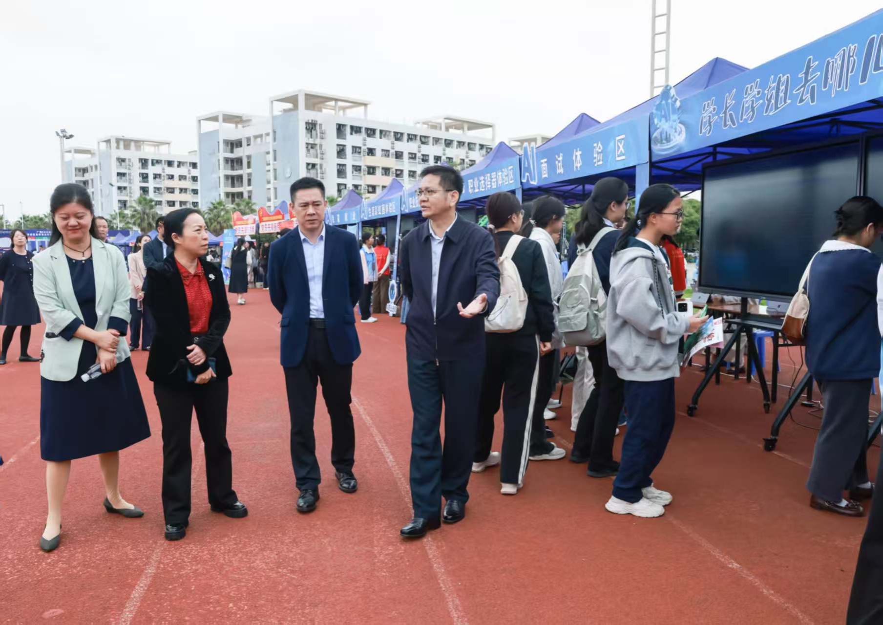双选会得到各级领导高度重视。自治区教育厅副厅长傅源方,高校学生工作处正处级干部宋潇潇,教师工作处副处长彭科,best365官网校长隆广庆、副校长龙妮娜等有关领导莅临现场指导工作,开展访企拓岗促就业专项行动,慰问用人单位代表,并与招聘负责人和毕业生亲切交流,深入了解社会需求与求职进展,为优化供需对接机制提供了重要参考。