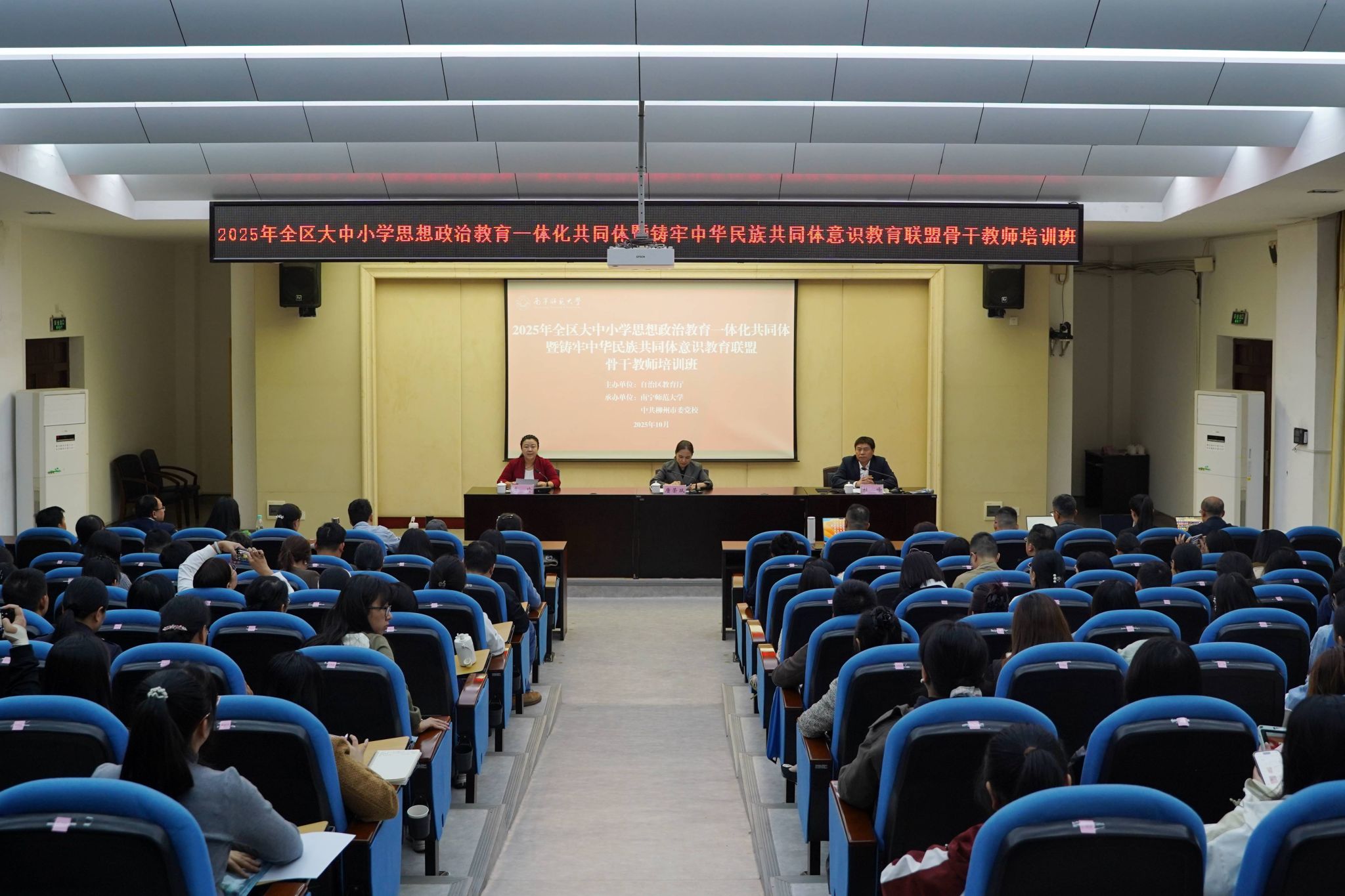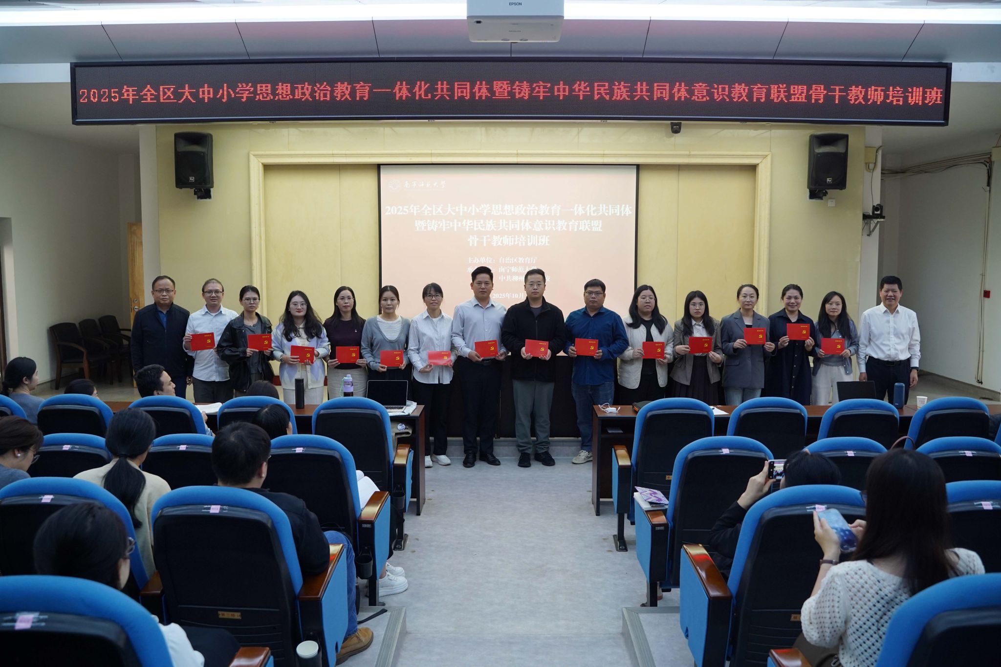 为深入贯彻落实习近平总书记关于教育的重要论述,特别是关于大中小学思想政治教育一体化建设、铸牢中华民族共同体意识的重要指示精神,全面推动铸牢中华民族共同体意识融入大中小学校融入办学治校、教书育人全过程,近日,由广西壮族自治区教育厅主办、best365足球官网承办、中共柳州市委党校协办的2025年全区大中小学思想政治教育一体化共同体暨铸牢中华民族共同体意识教育联盟骨干教师培训班在柳州举行。学校党委副书记唐荣双参加开班仪式。开班仪式由马克思主义学院党委书记李玲主持。