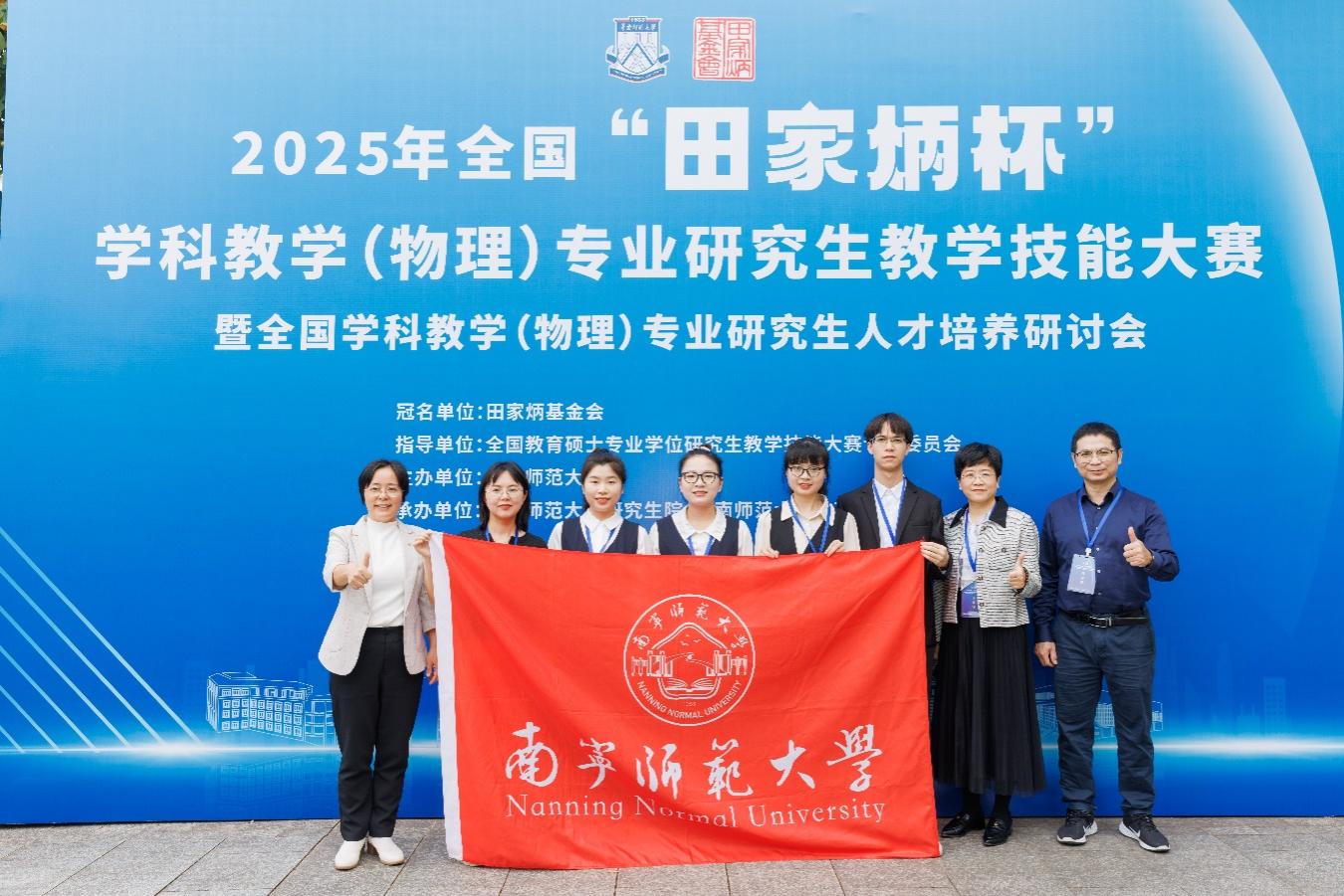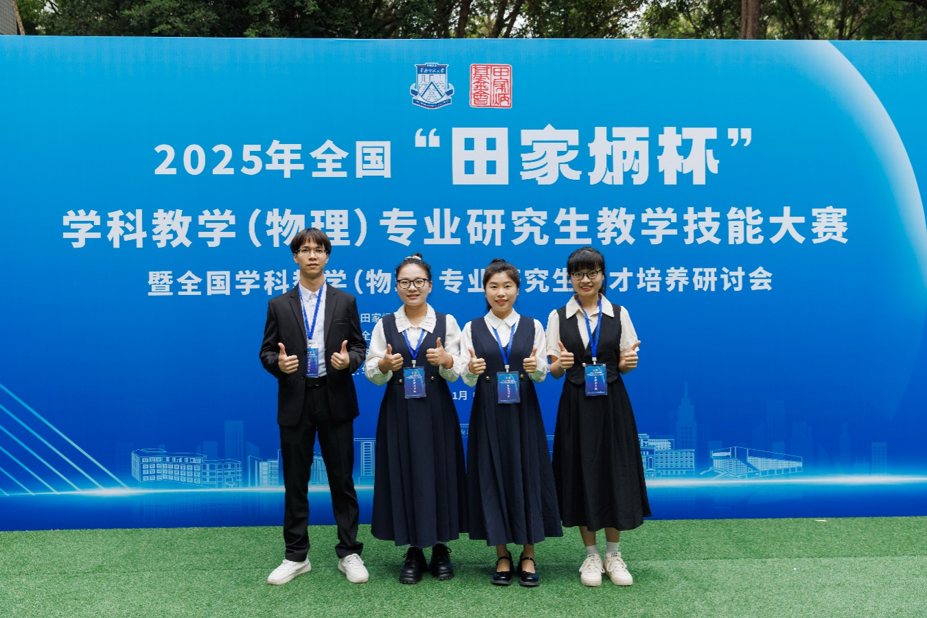 11月7日至9日,2025年全国“田家炳杯”全日制教育硕士专业学位研究生学科教学(物理)专业教学技能大赛决赛在华南师范大学举行。best365官网入围决赛的4名研究生表现出色,荣获二等奖1项、三等奖2项、优秀教学设计奖1项,刘韬容老师荣获优秀指导教师奖。此次竞赛获奖数量和等级均创历史新高,充分彰显了best365官网在学科教学(物理)专业人才培养方面扎实的实践功底与优异的培养成效。