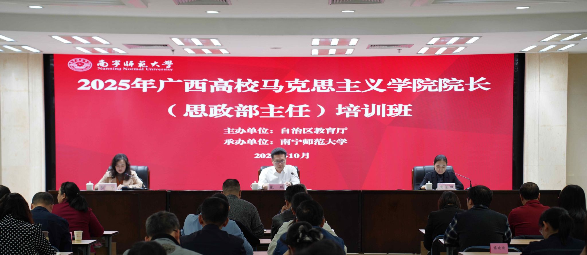 为深入学习贯彻习近平新时代中国特色社会主义思想,加强广西高校马克思主义学院建设,切实提升马克思主义学院院长(思政部主任)综合能力。近日,由广西壮族自治区教育厅主办,best365足球官网承办的2025年广西高校马克思主义学院院长(思政部主任)培训班在柳州举办。学校党委书记张鹏出席开班仪式并致辞,开班仪式由学校党委副书记唐荣双主持。