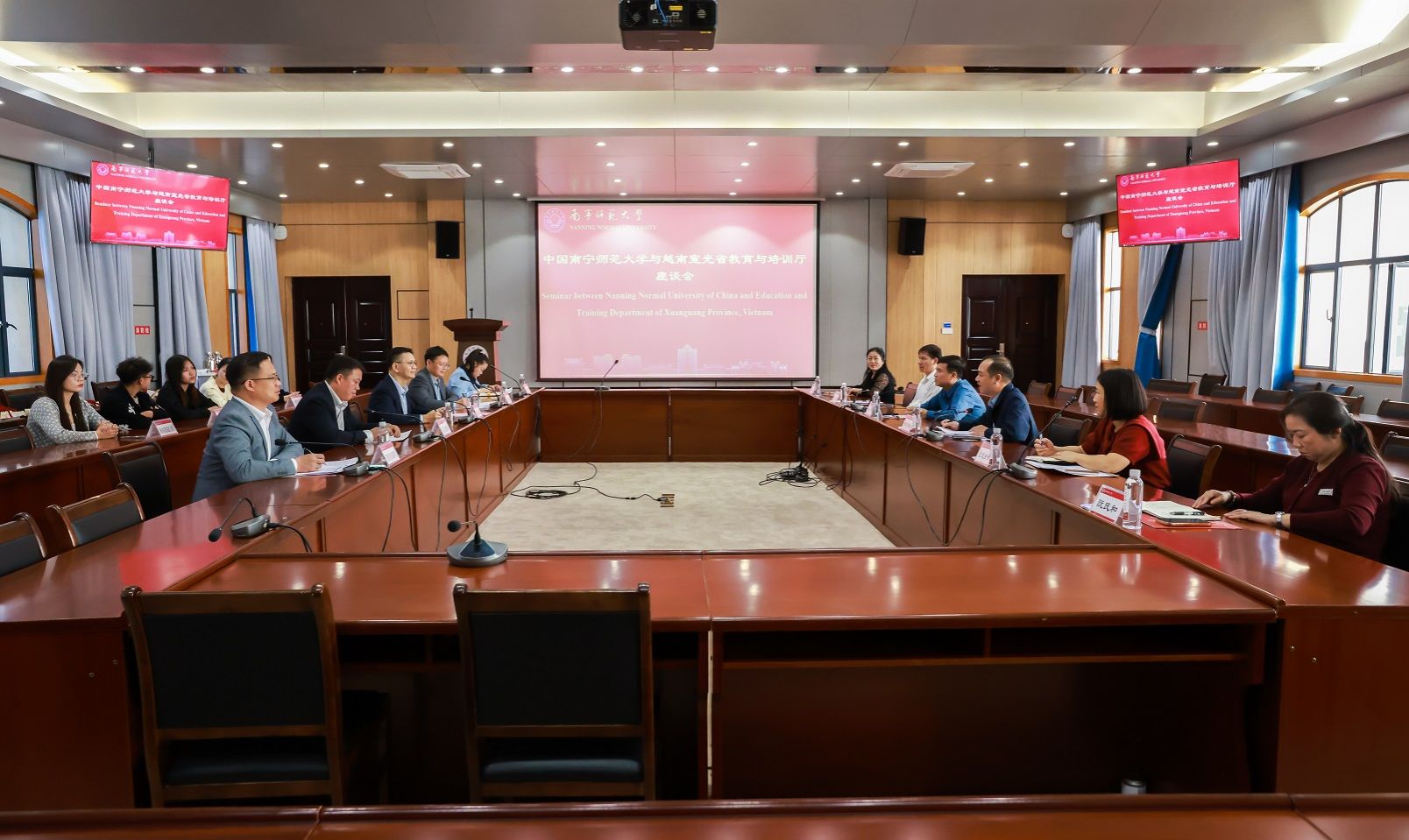11月13日下午,越南宣光省教育与培训厅副厅长林世雄一行6人到best365官网访问,best365官网校长隆广庆,国际交流合作处(国际教育学院)相关负责人在武鸣校区行政楼北127会议室,接待了越南宣光省教育与培训厅、越南外事厅边境管理处、越南新潮中学和阮文玄中学代表一行及南宁市第三十六中学代表。