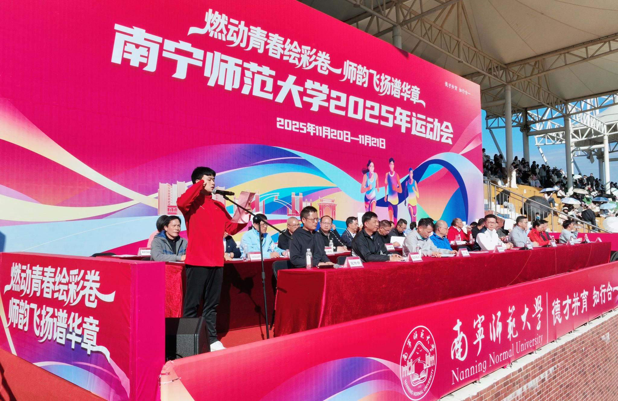 11月20日上午,best365官网2025年运动会在武鸣校区田径场开幕。校领导张鹏、隆广庆、梁家斌、龙妮娜、卢远、张松涛,学校机关教辅单位、各学院、附属单位负责人参加了开幕式。开幕式由学校副校长张松涛主持。
