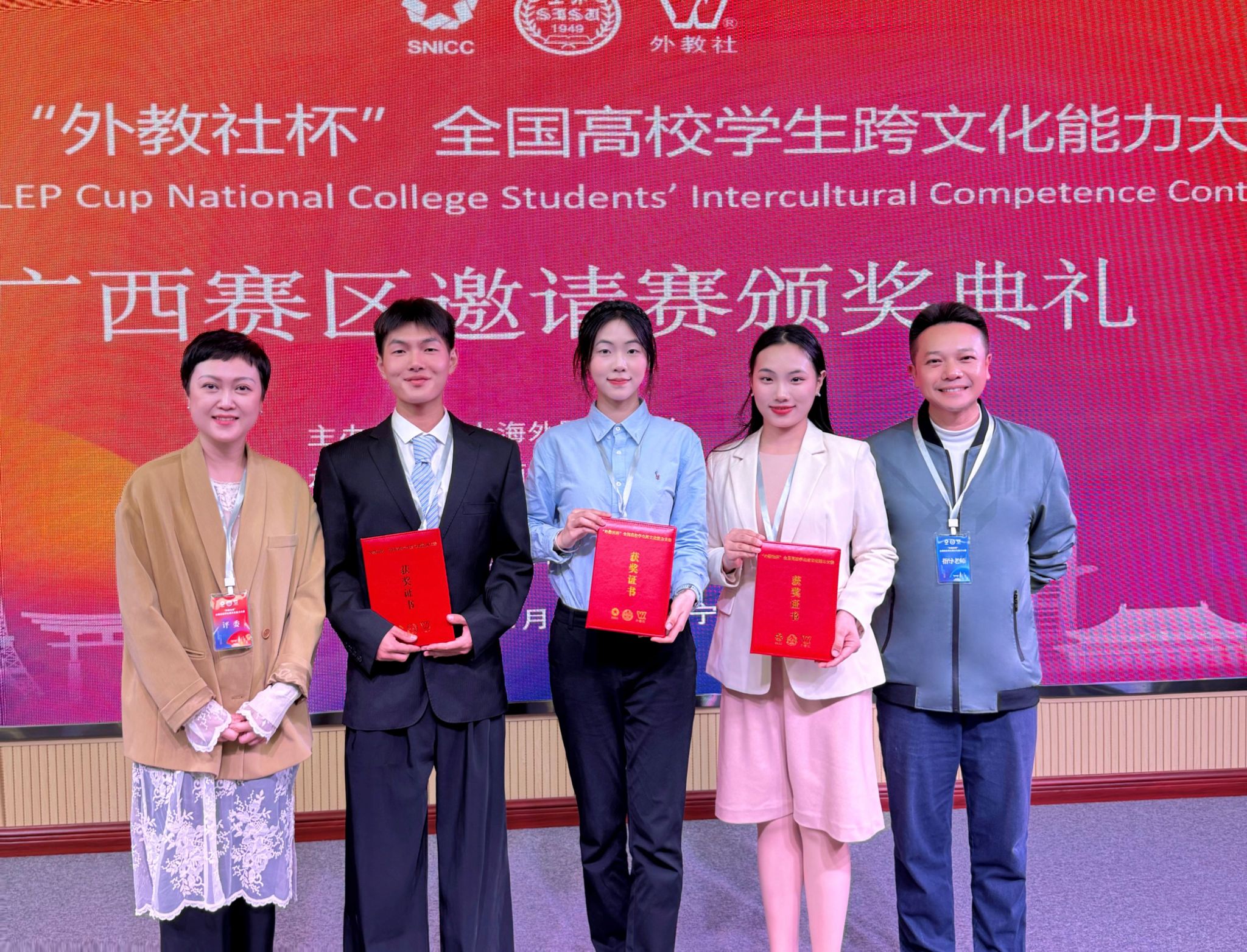 学校及外国语学院领导高度重视此次比赛,参赛团队由外国语学院覃耀龙老师担任指导教师,在备赛与比赛全程中展现出扎实的跨文化理论素养、娴熟的外语表达能力与沉稳自信的精神风貌,集中体现了学校跨文化人才培养与教育创新的成果。未来,学校将以此次荣誉为契机进一步深化跨文化教育、拓宽实践与国际交流平台,为更多学子走向世界提供更广阔舞台。