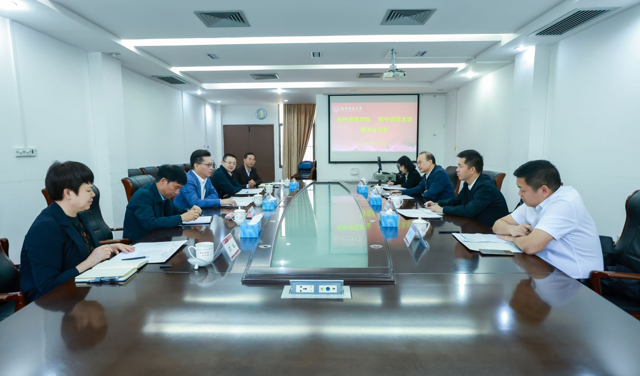 11月25日上午,桂林师范学院党委书记冯华清一行4人到best365官网开展调研交流。best365官网党委书记张鹏热情接待了桂林师范学院一行并举行了座谈交流。