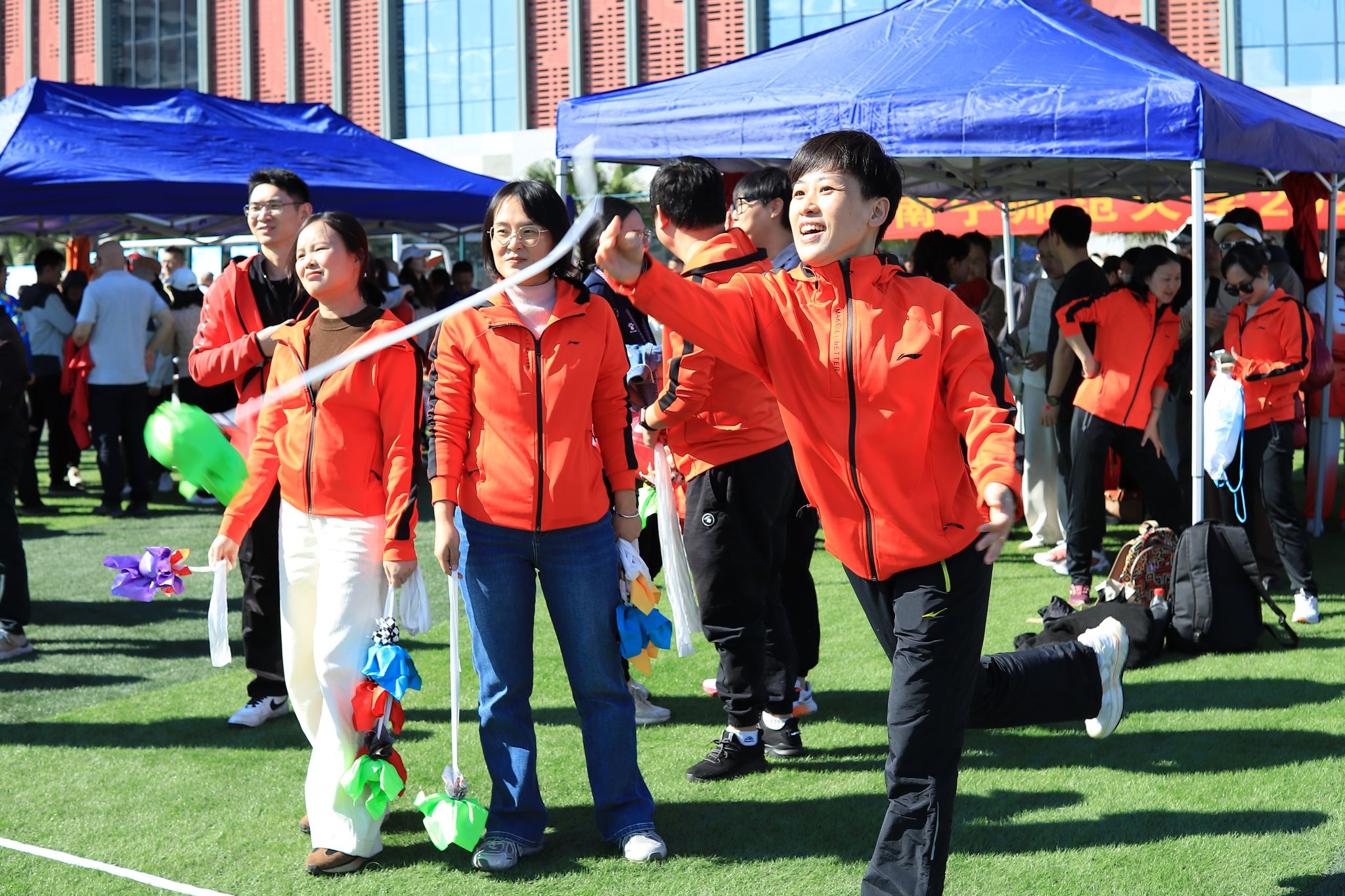 11月20日,best365官网2025年教职工趣味运动会在武鸣校区兰园体育场顺利举行,来自37个分工会的教职工踊跃参与,现场气氛热烈。本次运动会设置了“团体欢乐跳绳”“沙包投掷”“筷子夹球”“四平八稳”“一圈到底”“抛绣球”“鼓动人心”等多项趣味集体项目,展现了教职工团结协作、积极向上的精神风貌。