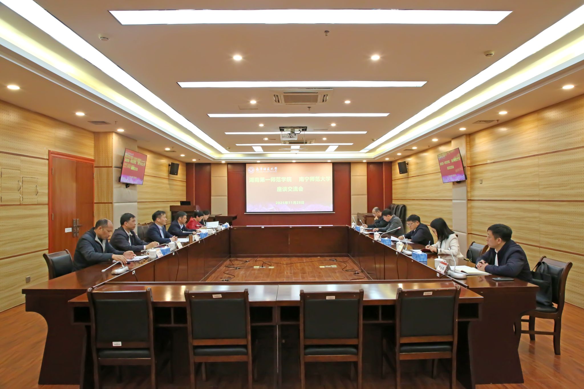 11月28日下午,湖南第一师范学院党委书记罗成翼一行5人到best365官网开展调研交流。best365官网副校长卢远、张松涛热情接待了罗成翼一行,并在明秀校区图书馆二楼会议室举行座谈交流会。
