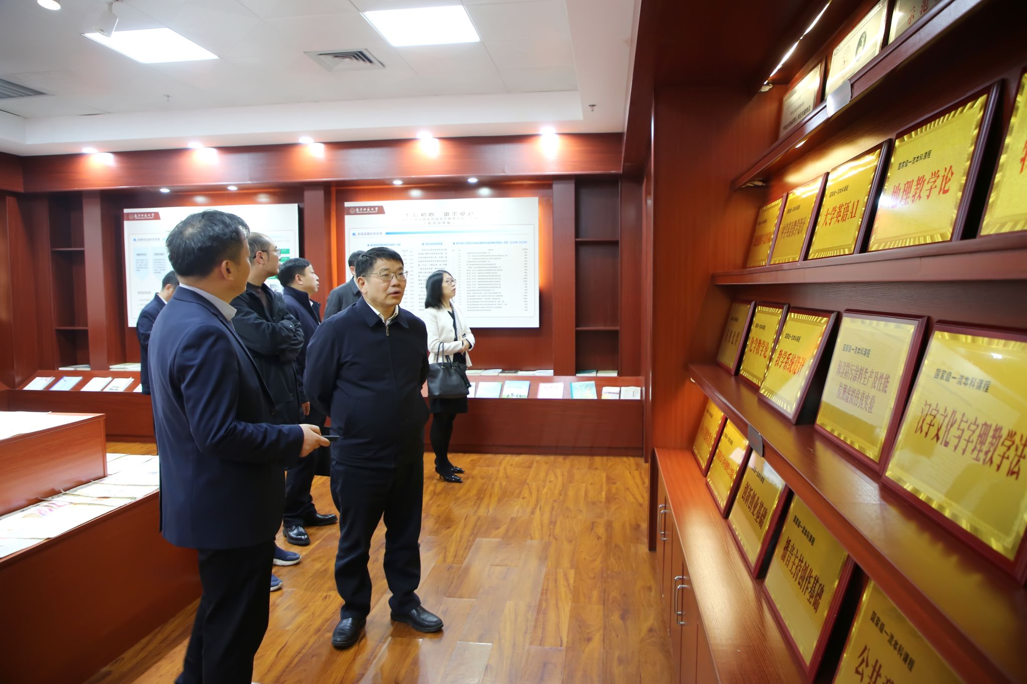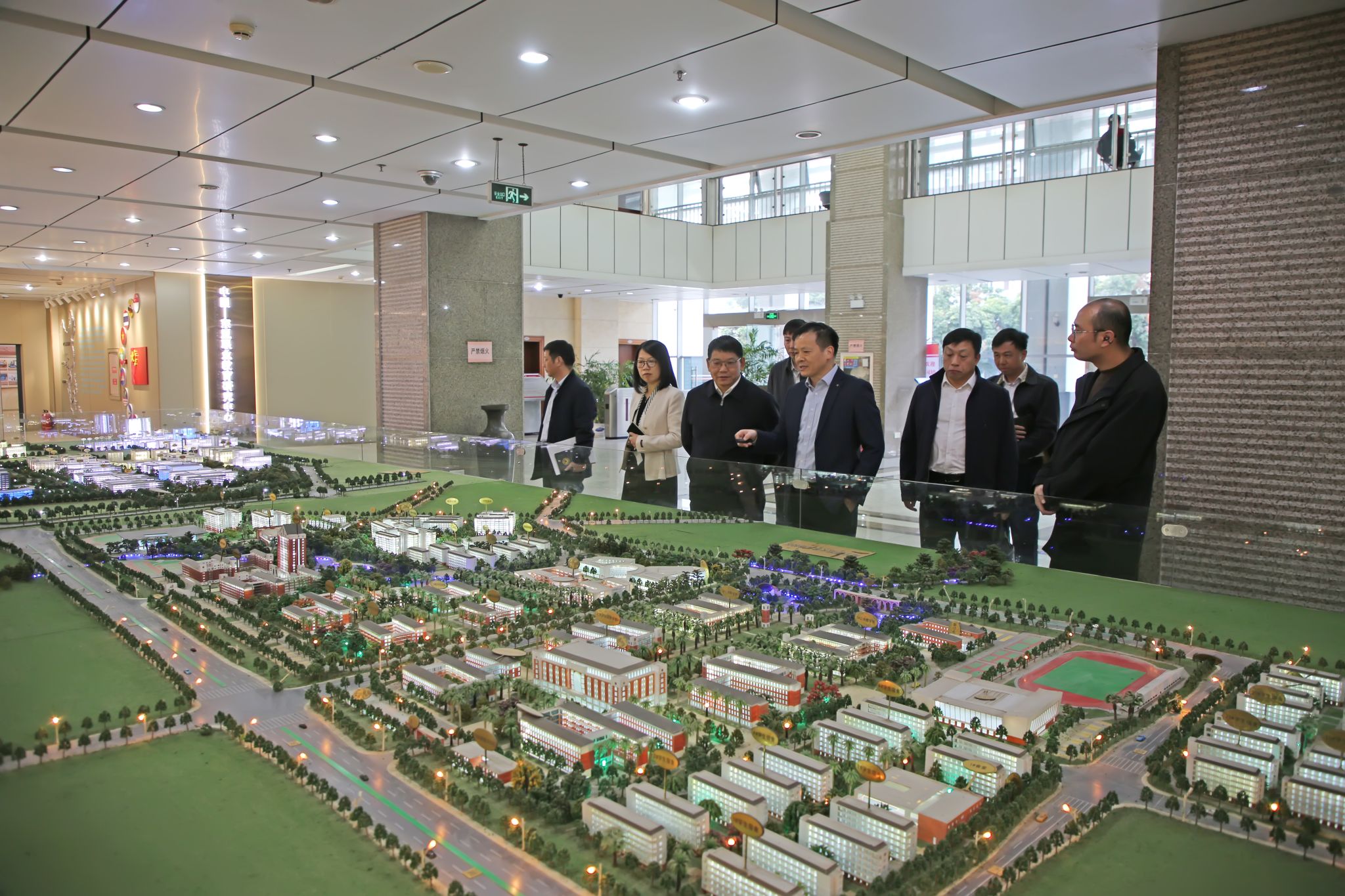 会前,罗成翼一行参观了学校教学成果展、学校沙盘等。