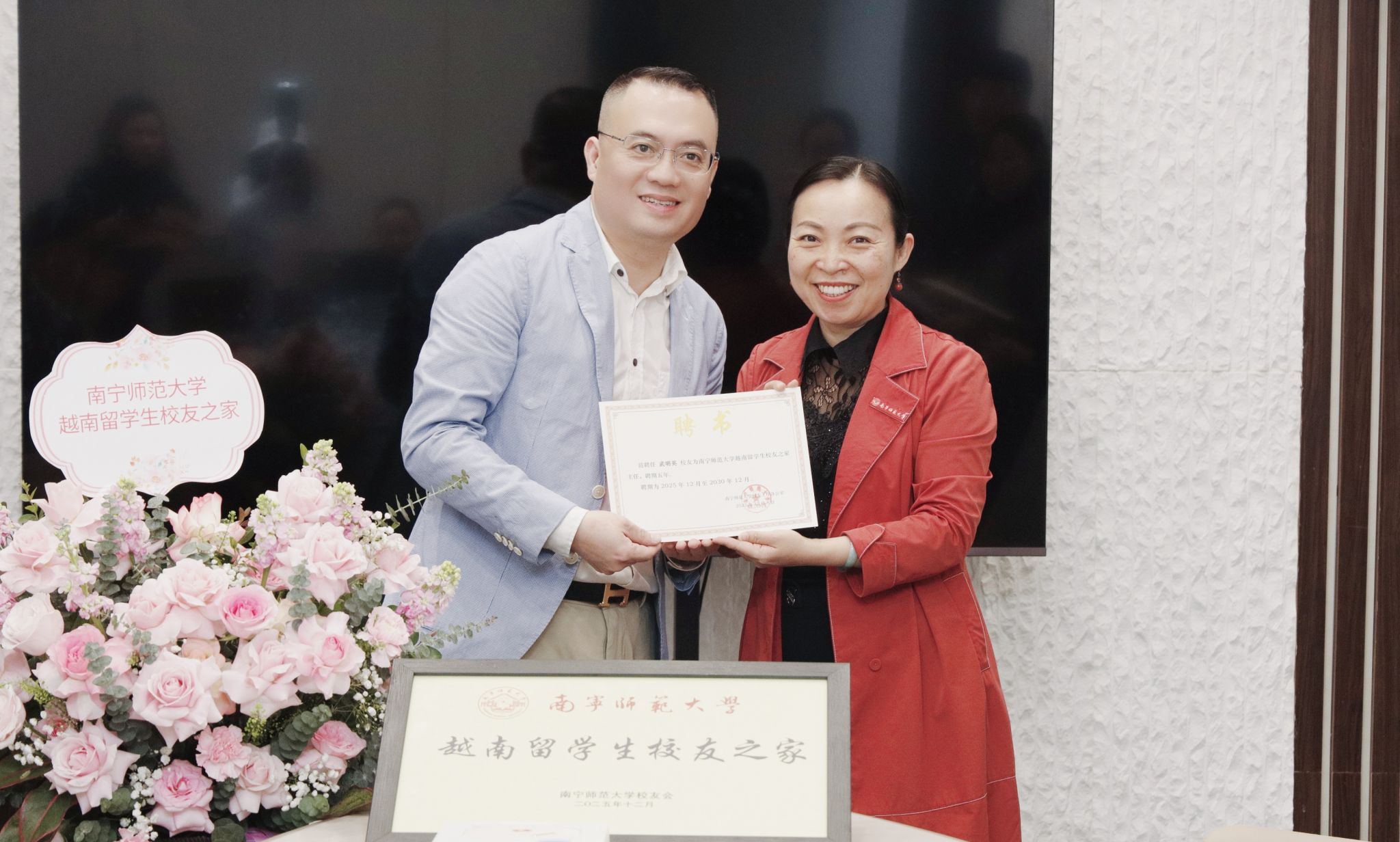 仪式上宣读了关于成立“越南留学生校友之家”的决定,举行了best365足球官网越南留学生校友之家授牌与聘书颁发仪式,旨在凝聚海外广大校友力量,搭建合作桥梁,进一步深化中越两国在教育领域的交流与合作。