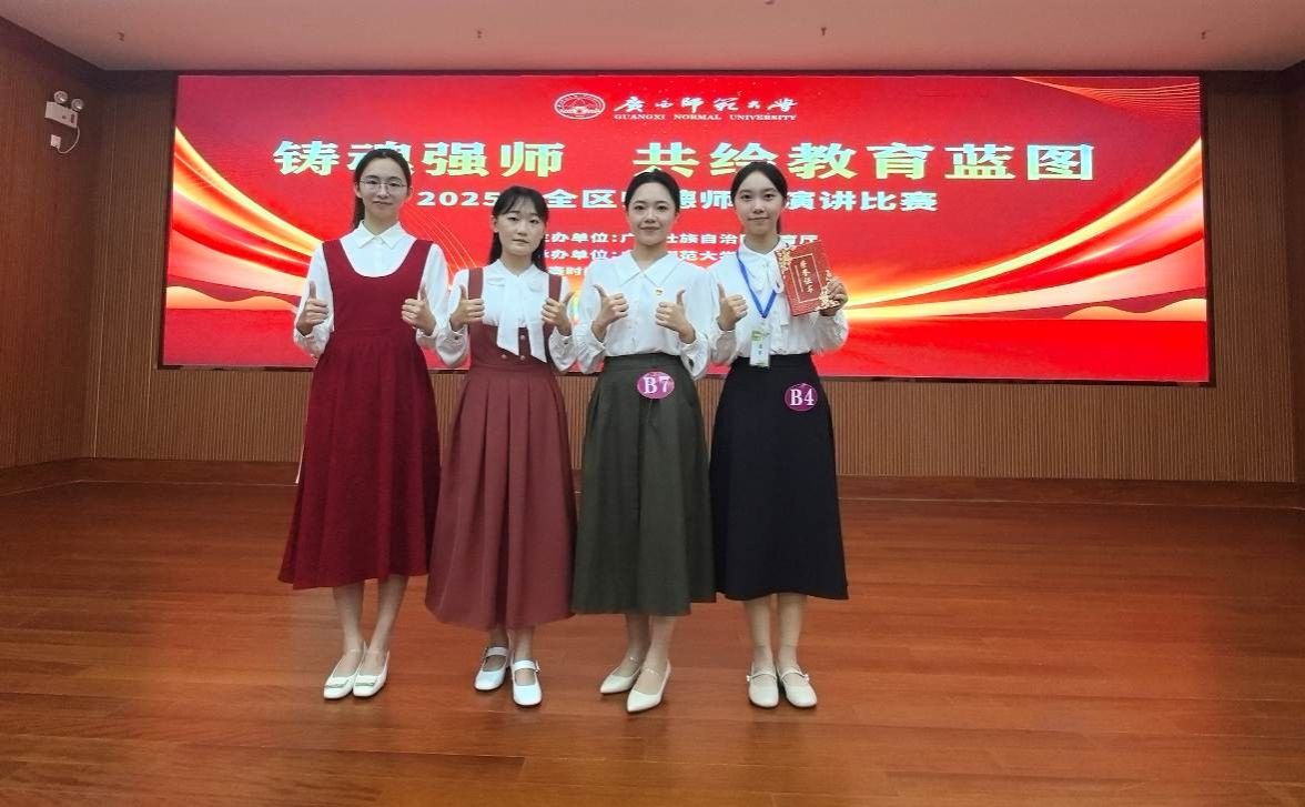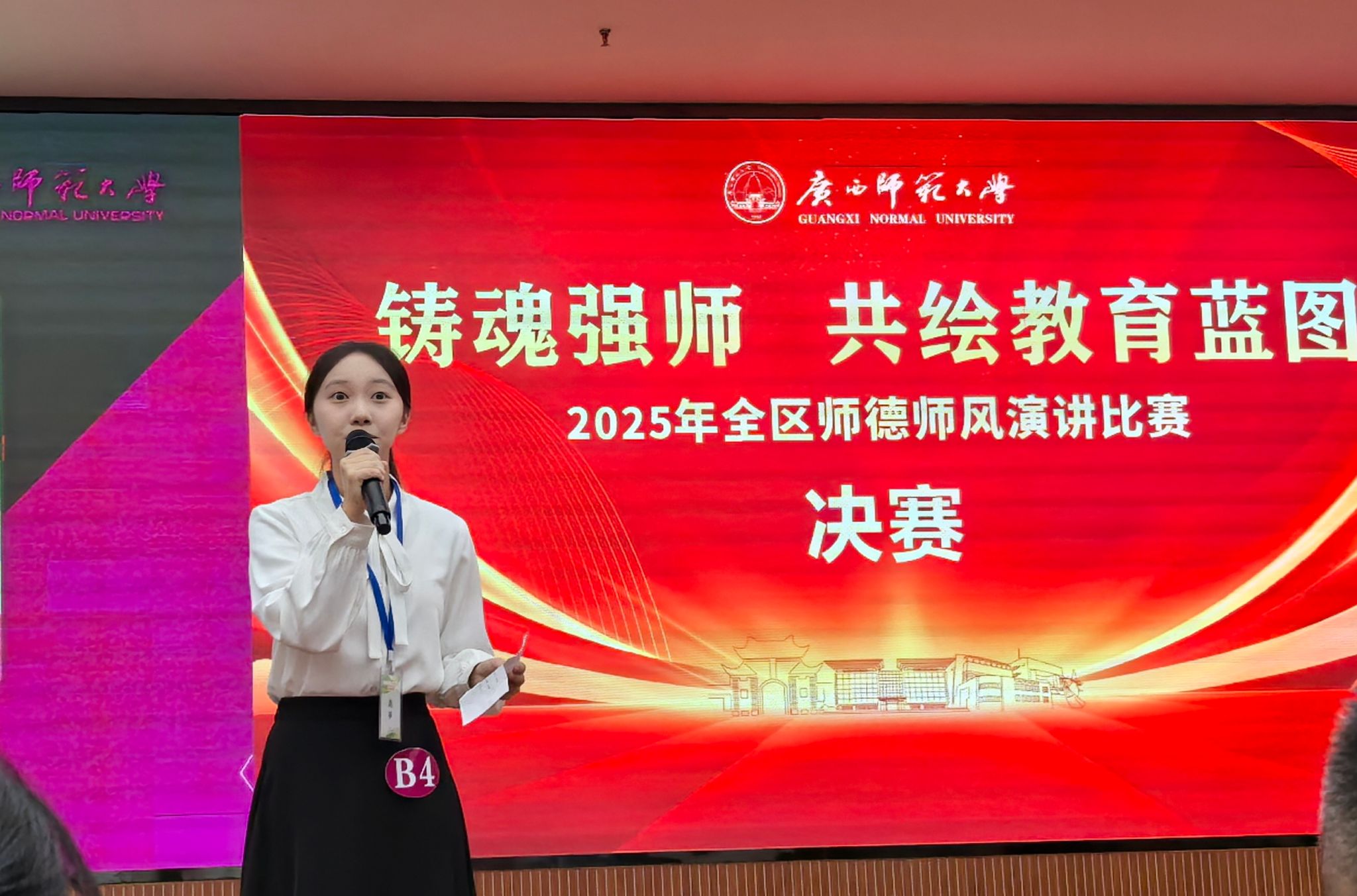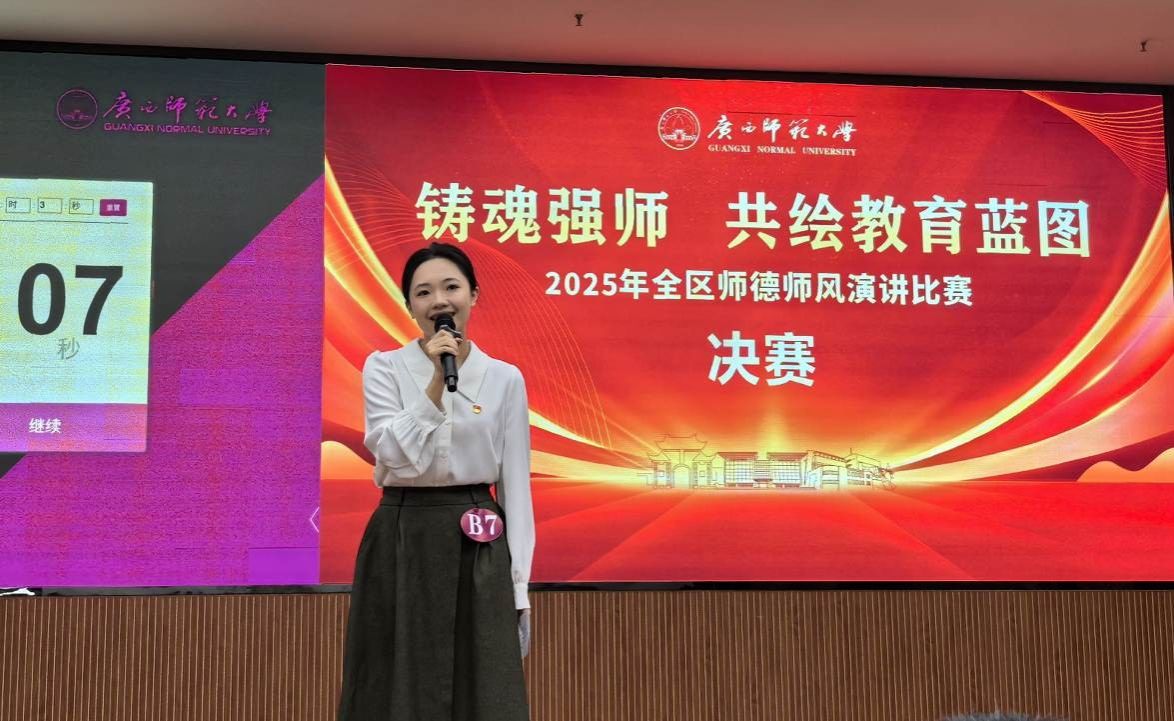 近日,自治区教育厅公布了2025年全区师德师风演讲比赛获奖名单,best365官网有3名选手获奖,其中马克思主义学院劳倩雯和外国语学院刘静怡荣获一等奖、初等教育学院林伊荣获三等奖。一等奖获奖率在参赛的29所高校中排名第一。